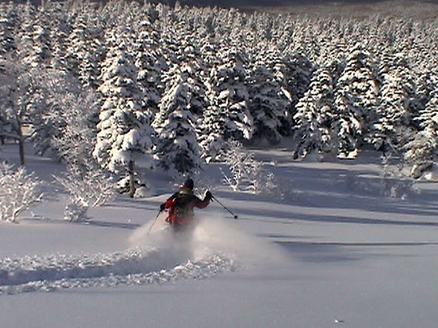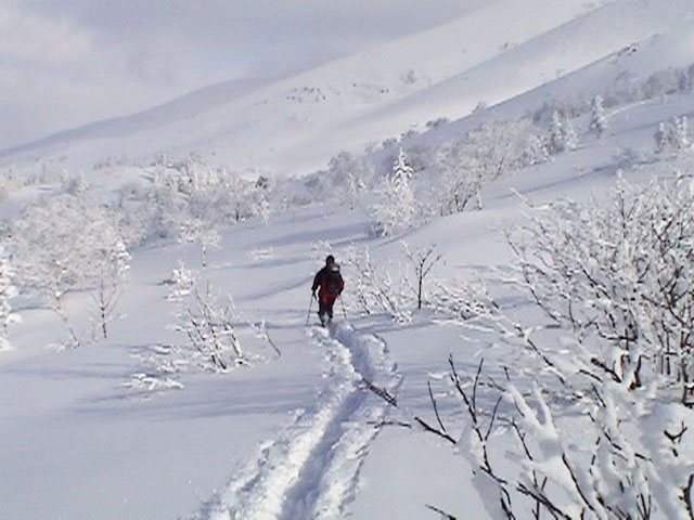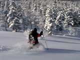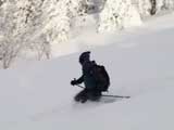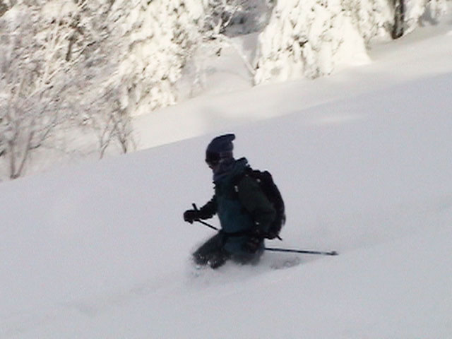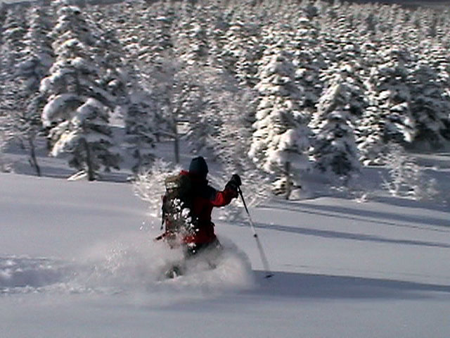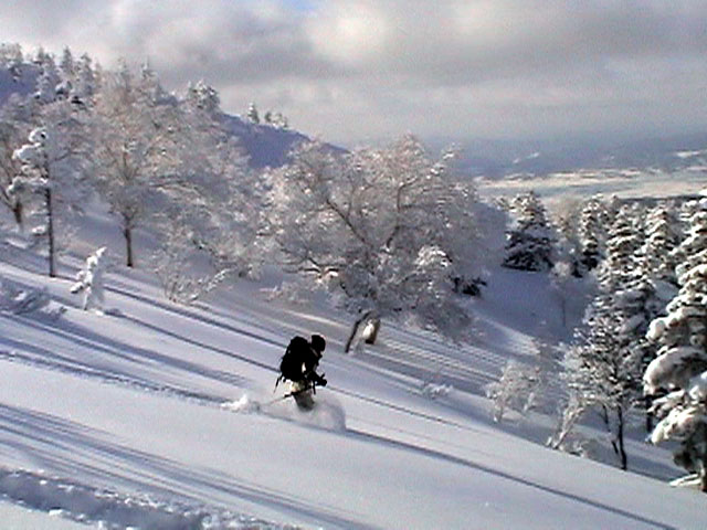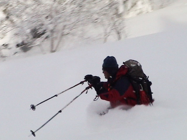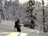 樹林帯の雪は深く、上手く乗らないと、なかなかスピードが出ない