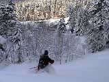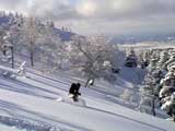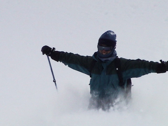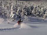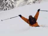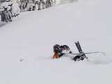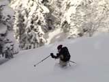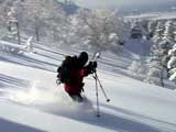 パウダーを吹き上げながら大きなターン弧を描いていく