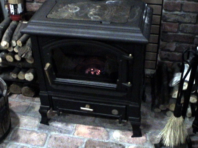 暖かいストーブが迎えてくれる