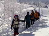 ここだけはスキーを脱いで登る。先頭の人は結構きつい。