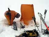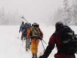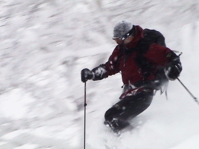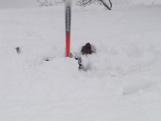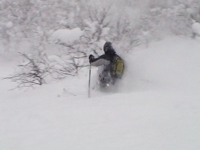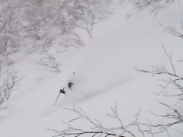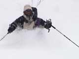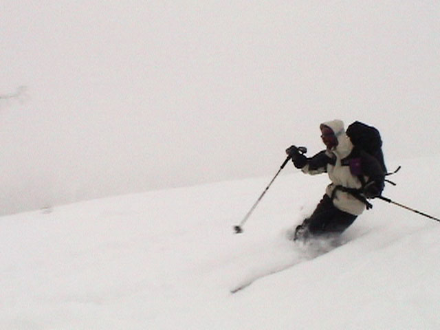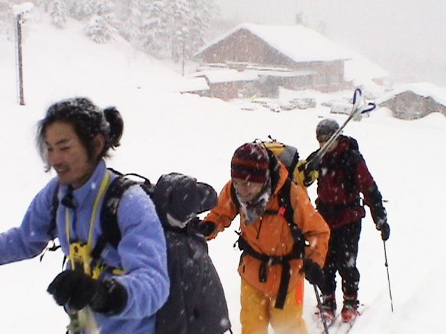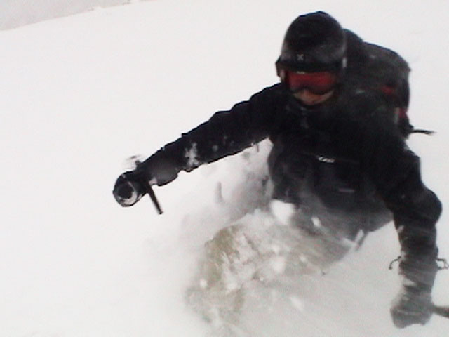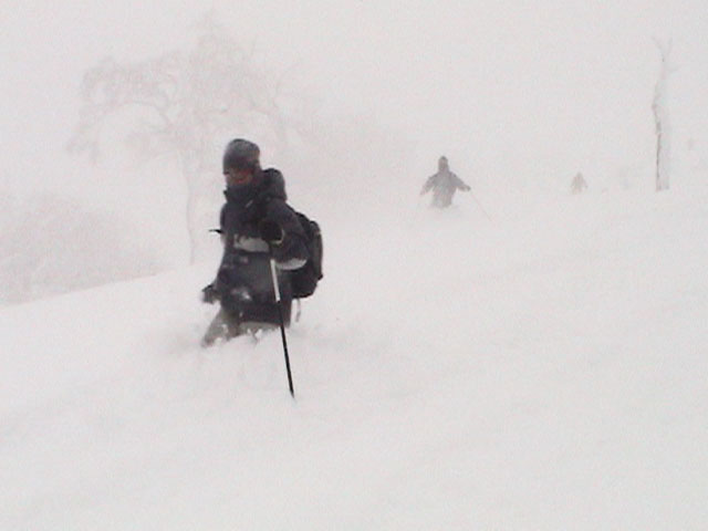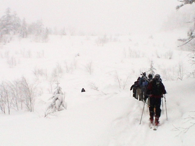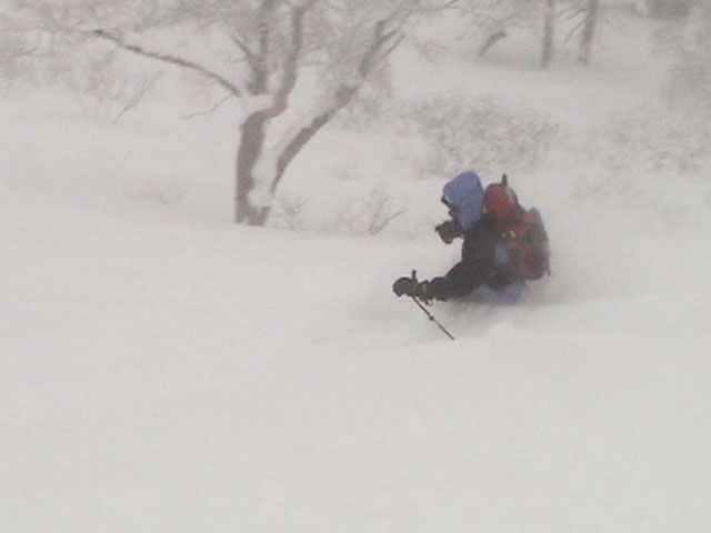 | 2003年1月12日(日) 三段山スキーツアー(旦那復活!?深雪パウダー) 昨日のガイドの山小屋ツアーがあまりにも順調だったので、すっかり気をよくした旦那。今日は無謀にも三段山ツアーを決行してみました。 極上の雪質ながら視界不良のため2段目上で撤退。しかし、そこからはさすがの三段山クラブ。 このまま帰るのはもったいないとばかり、皆で2段目上からナマコ尾根側の急斜面を落ちる落ちる・・ 何度も登り返し、粉雪無重力滑降を堪能いたしました。 フェスショット、オーバーヘッド・・前が見えません。息ができません。叫びながら落ちるだけです。 良かった〜粉雪は優しく旦那の体を労ってくれるようでした・・が、その後肩は熱を持ちシクシク痛みました。転倒して肩を痛めないように慎重に滑ったつもりでしたが、現実はそんなに甘くない。少々羽目を外しすぎました。猛烈に反省していますが後悔はしない・・・そんな三段山でした(^_^)。 2006.10.24追記:この場所で2006年3月6日に雪崩による死亡遭難事故が発生しました。 二段目北東斜面は、積雪条件によっては非常に危険な場所となります。どうか、十分にご注意下さい。 天候:雪 気温:-5〜-9度 風速:0〜5m 視界:樹林帯より上は視界不良 雪量:十分 雪質:底なしパウダー コース:白銀荘〜2段目上 メンバー:三段山レディース(ゆきこ、みどりママ)、旦那、スー、のざき、ナガ、ひでき、ニッシー、ヨッシー 合計9人(順不同) |
