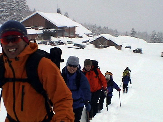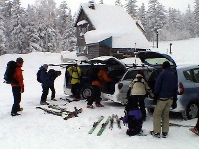 ![]() 白銀荘駐車場 Y田さん達と出合う |