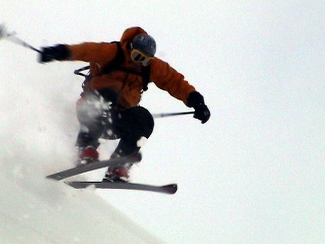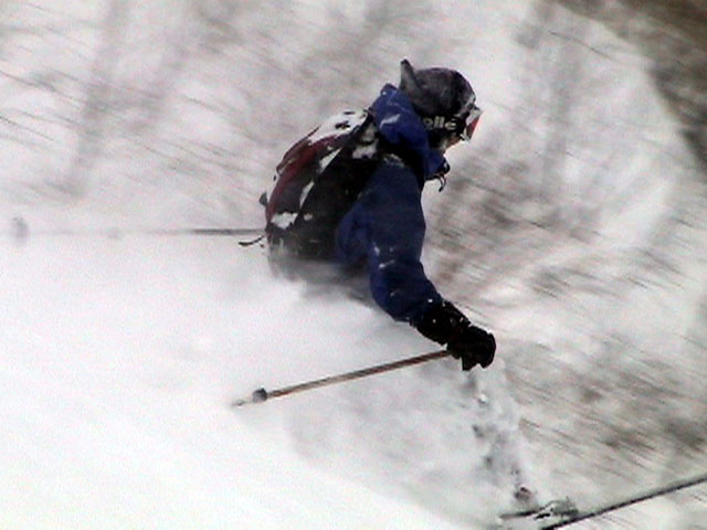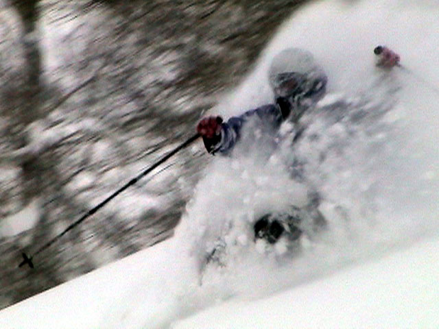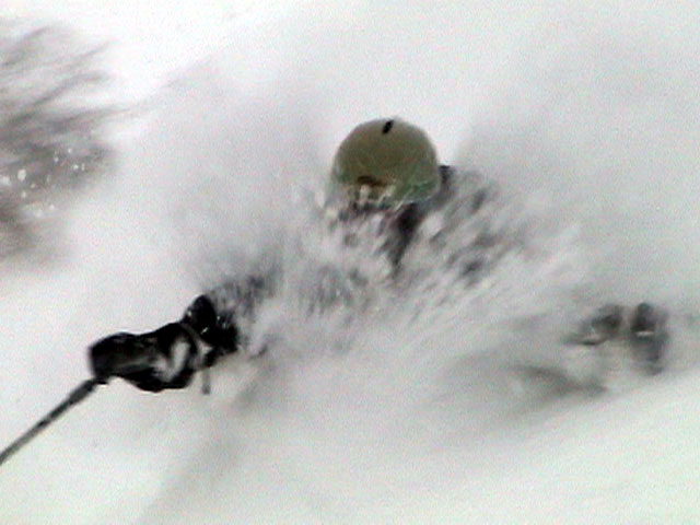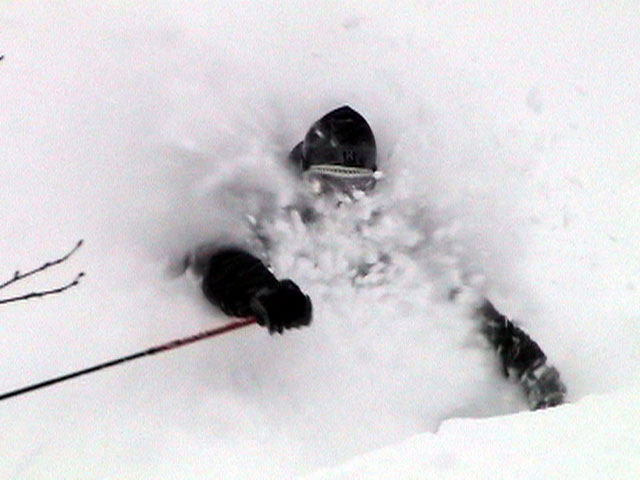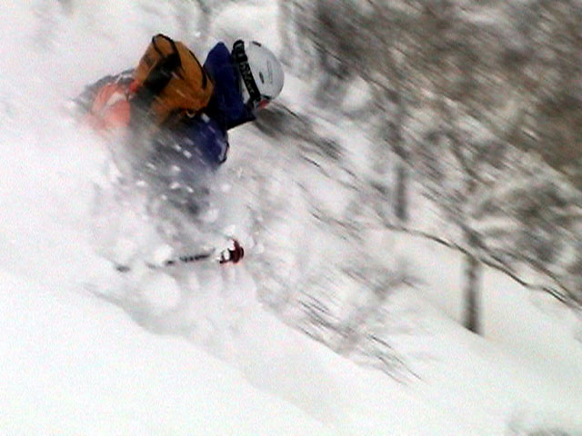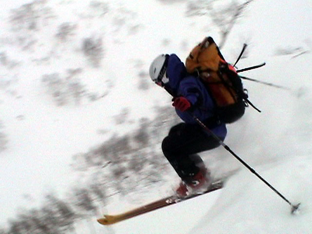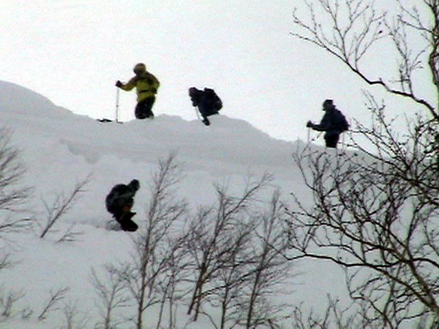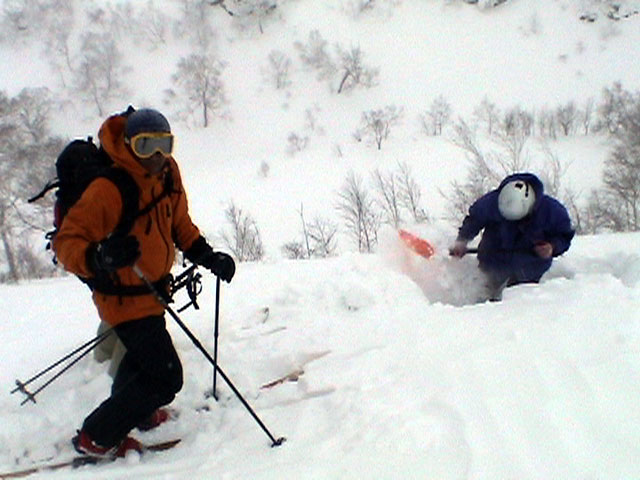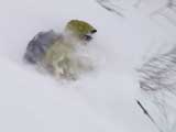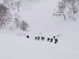 ![]() 人柱ぱっちまんがダイブ! 他のスキーヤーは雪崩れを警戒して見守る |