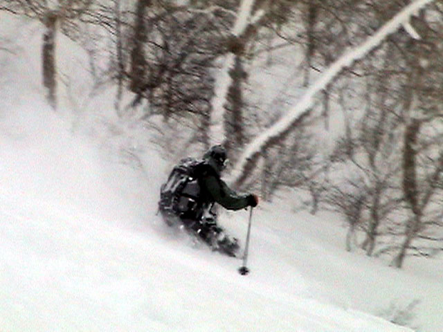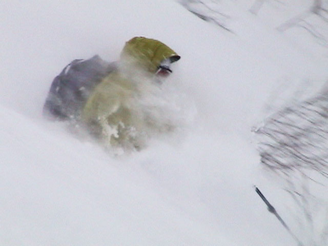 ![]() ここは滅茶苦茶雪が軽くて深かった。深い姿勢のナガ |