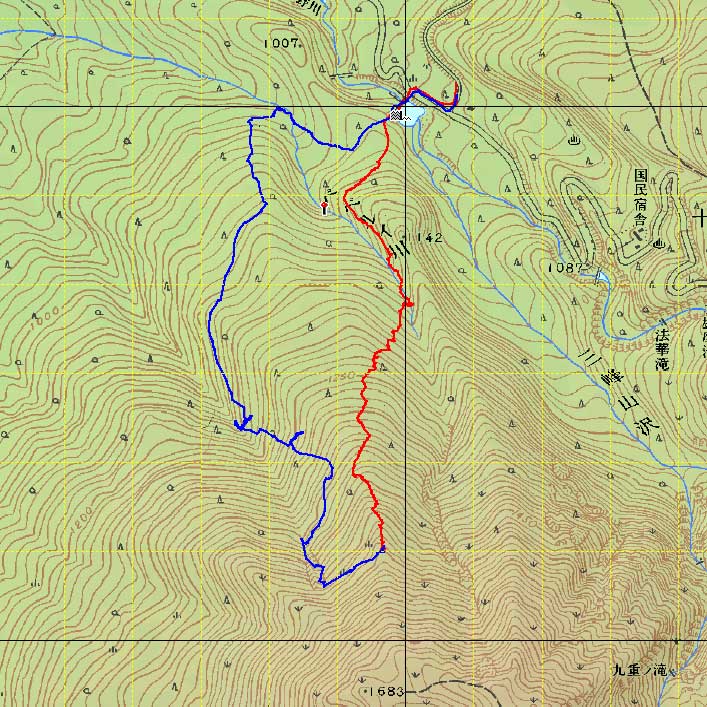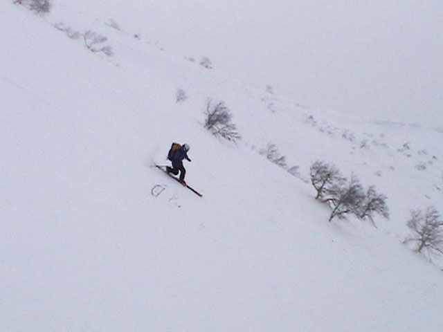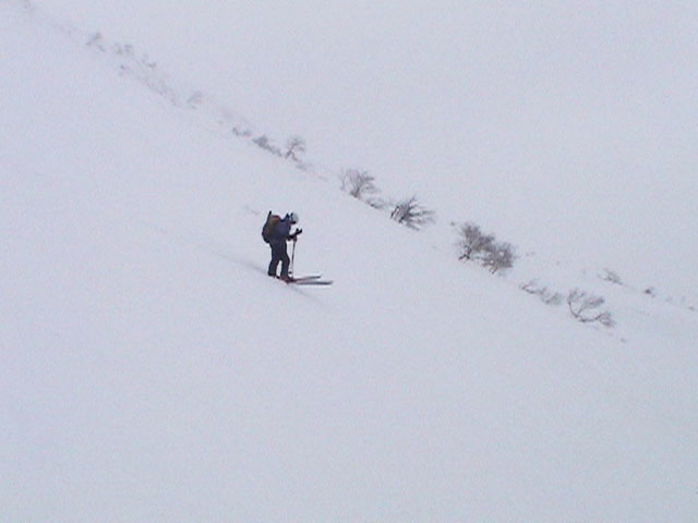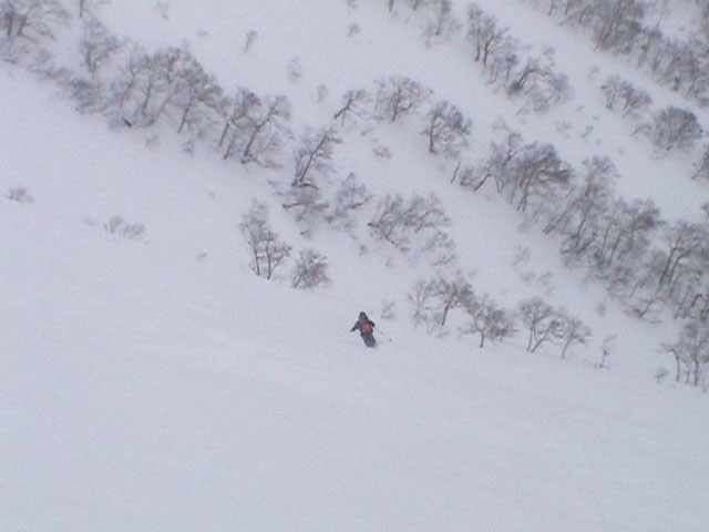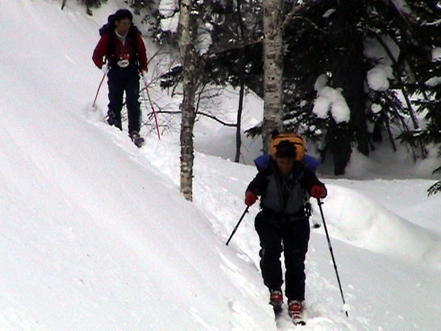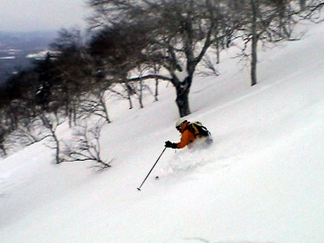 ![]() 二十林班沢川へ向かって 滑降開始 |