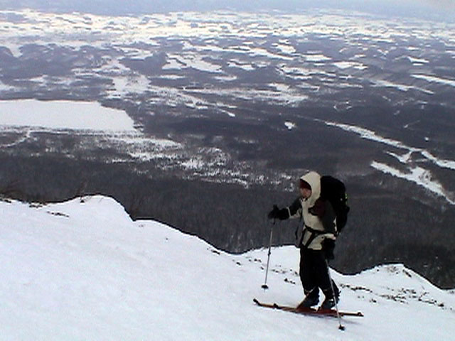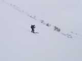 富良野岳に初トライのキャプテン。もう少し良い雪を滑らせてあげたかったなあ。見違えるほど上手に滑っていましたよ。 |
