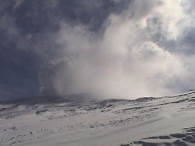 ![]() 時折、噴煙が斜面を撫でるように降りてくる。気持ちが悪い。 |