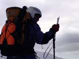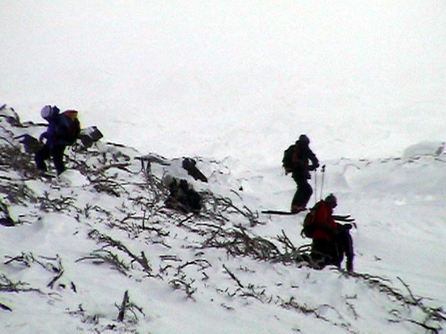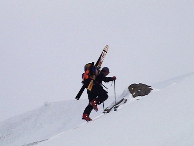 ![]() ガリガリのアイスバーン斜面を、パウダーを求めて登る |