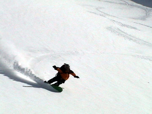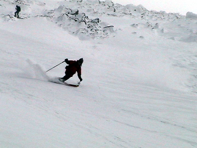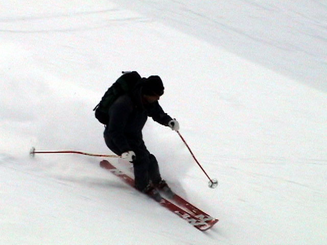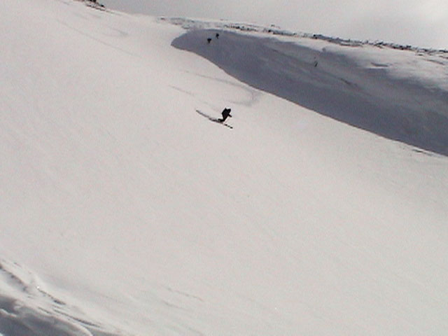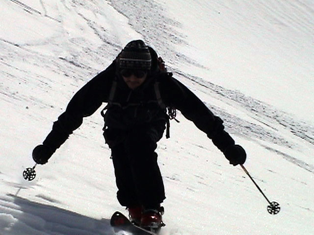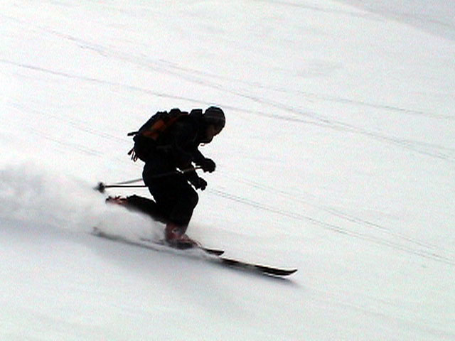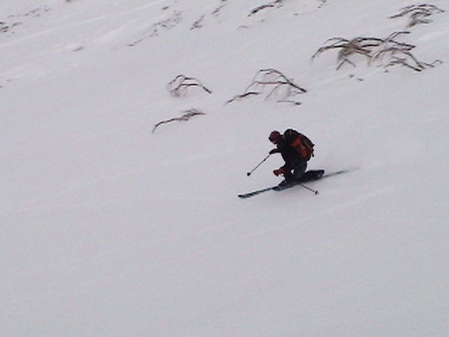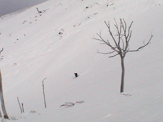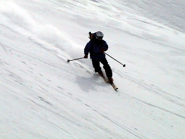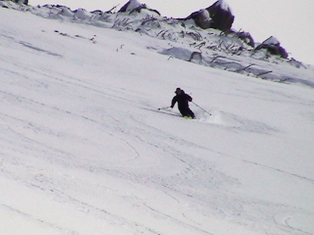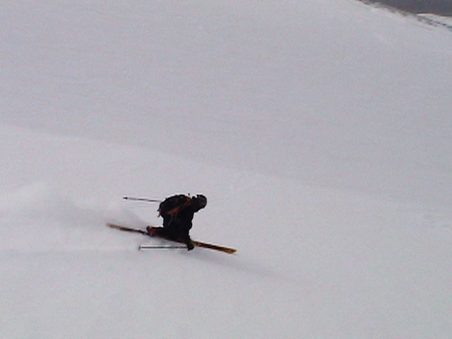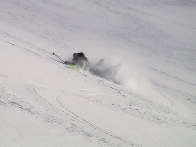 ![]() しのぶちゃん 滑落中〜エッジが抜けやすい危ない雪質でした |