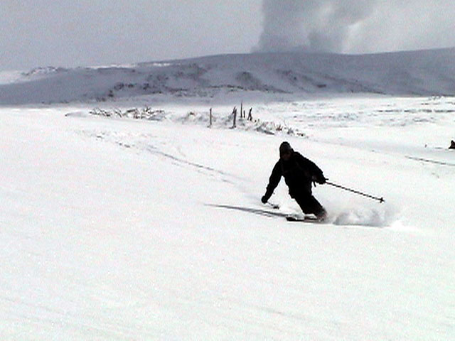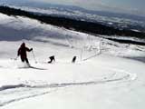 ![]() 噴煙を警戒して、8合目あたりから滑降を開始する |