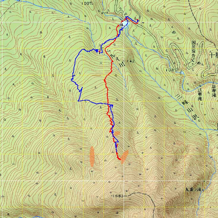 オレンジの部分は雪崩れた箇所です。