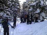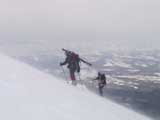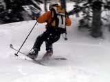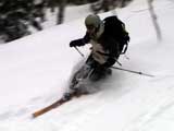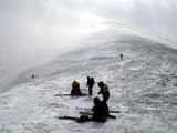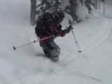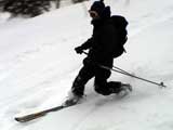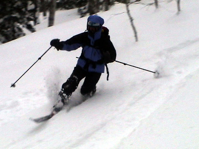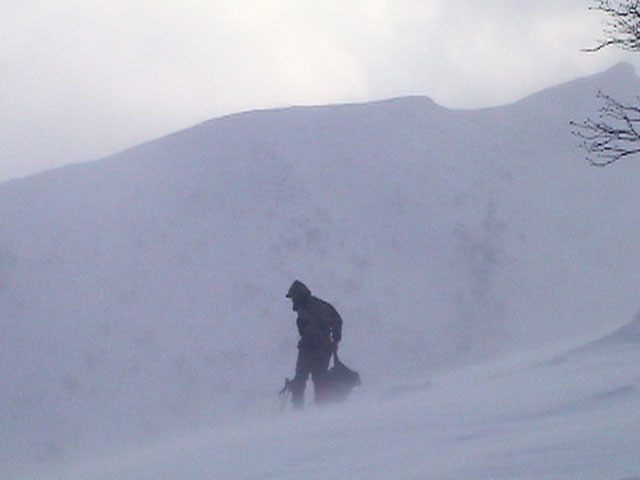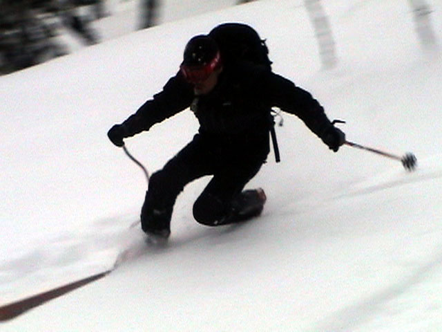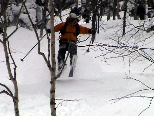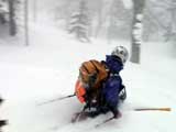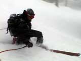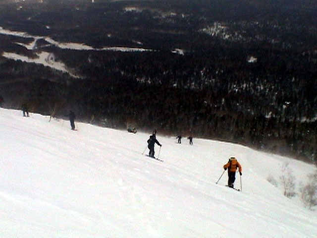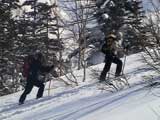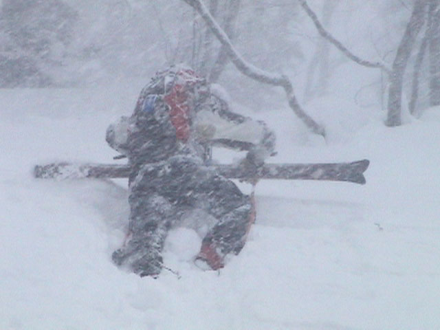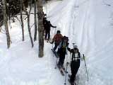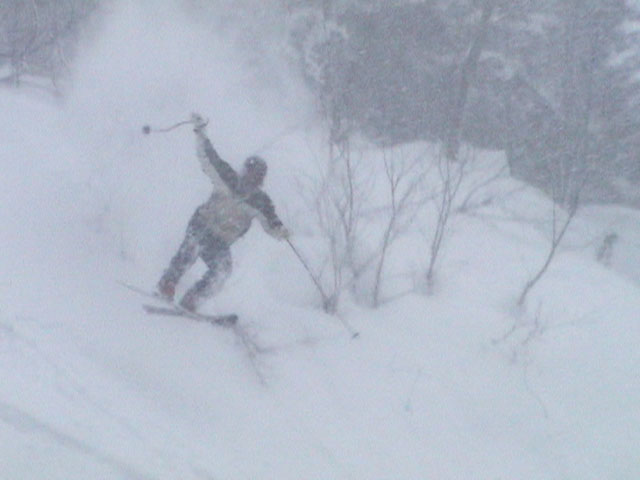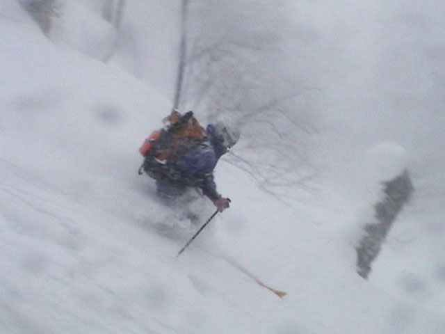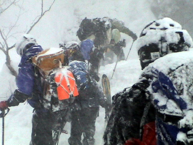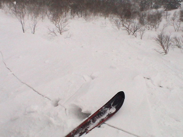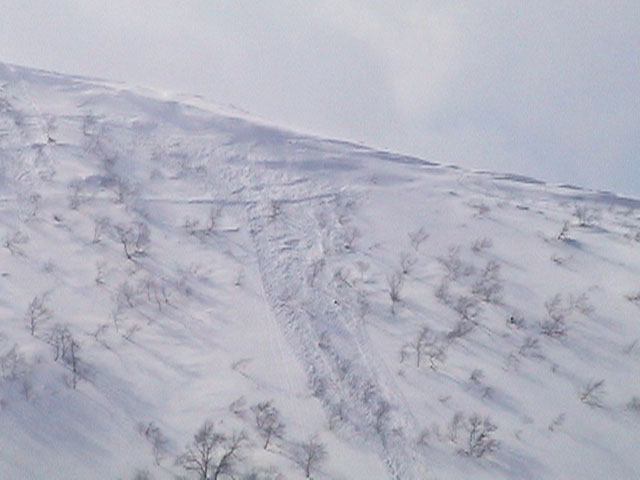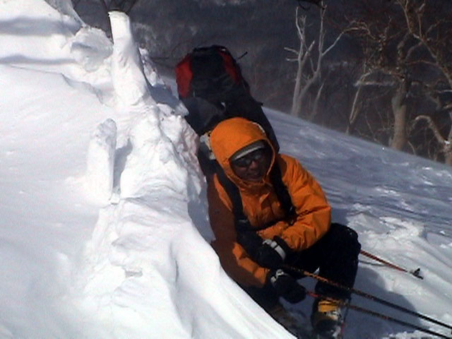 | 2003年3月16日(日) 富良野岳スキーツアー(雪崩祭り) なかなかエキセントリックな富良野岳だった。 樹林帯を登っている間は、小春日和。小鳥のさえずりなんかも聞こえて平和だったのだが、標高1400くらいから一変して暴風地獄へ 見ると、西尾根に誰かが誘発した雪崩が見える。誰か埋まっているのかと心配したが、その先にシュプールがあったので一安心。 風速15mくらいの風が吹き付ける尾根上を、なんとか標高1500mのドロップポイントまでたどり着き、弱層試験をしようとちょっと谷へ降りたら足下から5メートルくらいの亀裂が走り・・雪崩。なんだ、弱層試験をするまでもないじゃん。と、思ったら次に15メートルほど離れた場所でパートナーが誘発した雪崩が旦那の周りを走り抜けていった。 雪崩の中に立つという経験は初めてだった。20センチくらいの表層雪崩だったので押し倒されて流されずにすんだが、もっと下部で襲われたらやばかった。 この時点で沢への滑降を中止し、尾根上を慎重に降下。 樹林帯の付近まで降りて、そろそろ谷への滑降が可能かな〜と雪庇に近づいたら、足下から雪庇崩落〜雪崩誘発・・大声で周りの登山者に雪崩の警戒を呼びかけた。 いやはや。雪崩づくしのツアーだった。もちろん、その後は尾根上の樹林帯をおとなしく降りて帰った。 天候:晴れ〜吹雪 気温:-5〜-10度 風速:0〜15m 雪質:上部はウインドパック〜20センチくらいのパウダー 樹林帯は、底着きのない良質のパウダー メンバー:旦那、ゆきこ、toshi、ぱっちまん、シロクマ、なまこ、チリ、スー、キャプテン、みどりママ 合計9名 コースタイム:バーデン上富良野前8:45-ベベルイ沢沢9:19-ジャイアント尾根ドロップ予定地点(1513m)11:06-バーデン上富良野前13:23 |