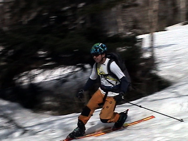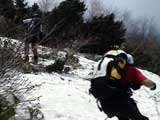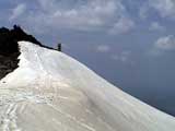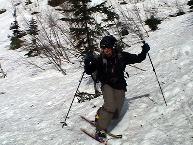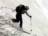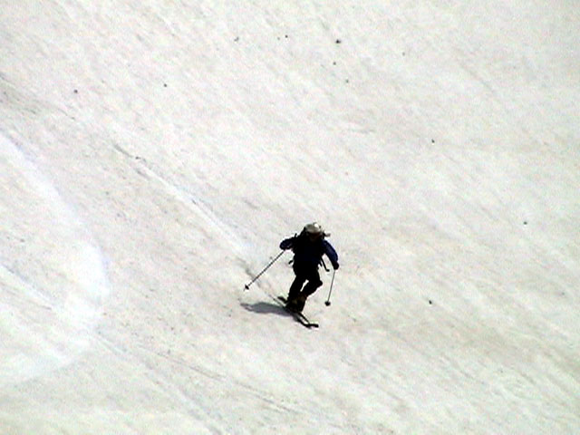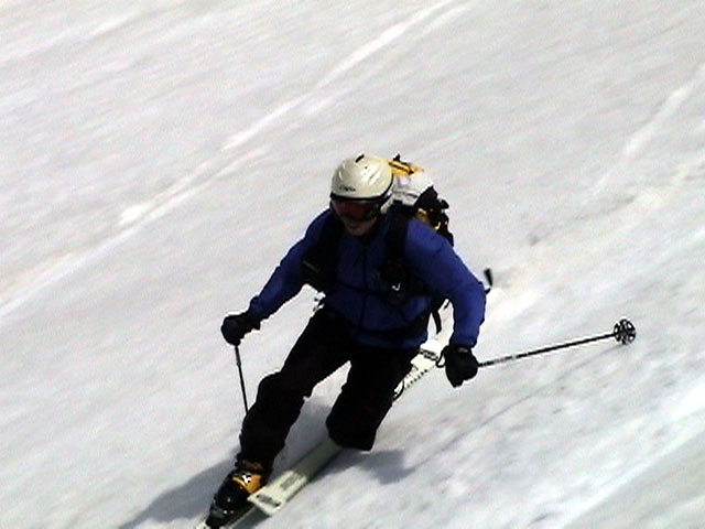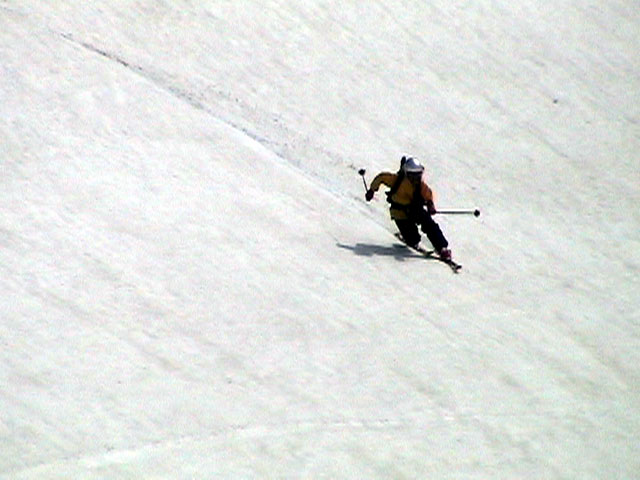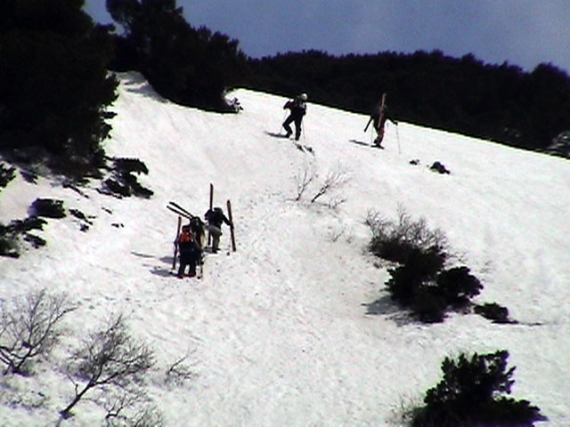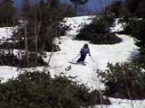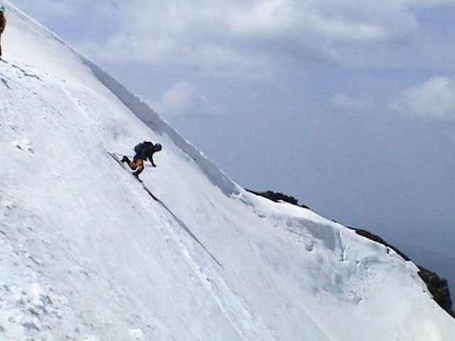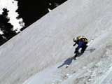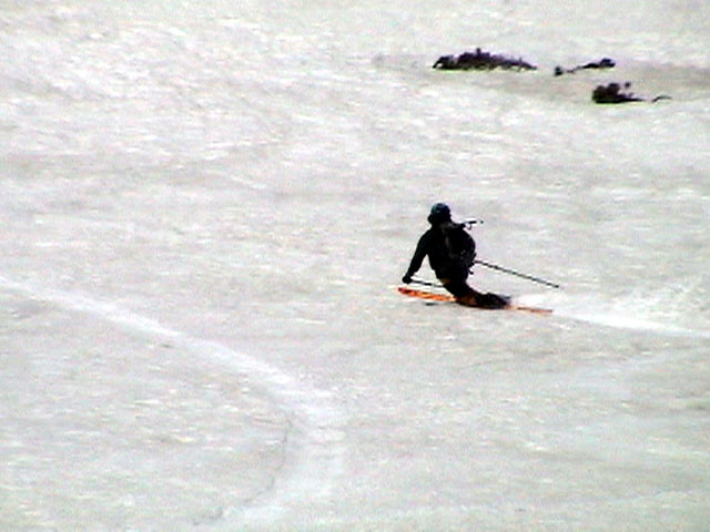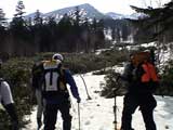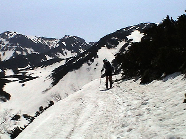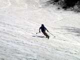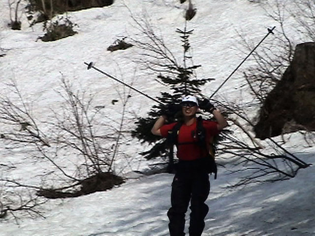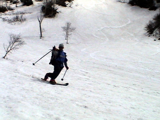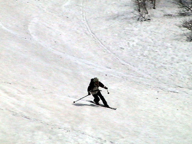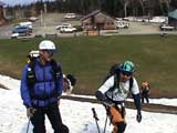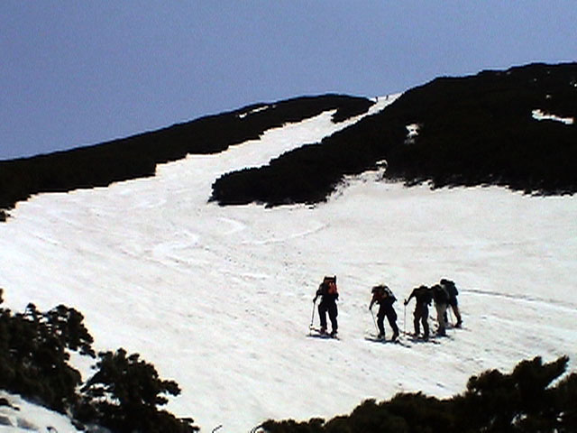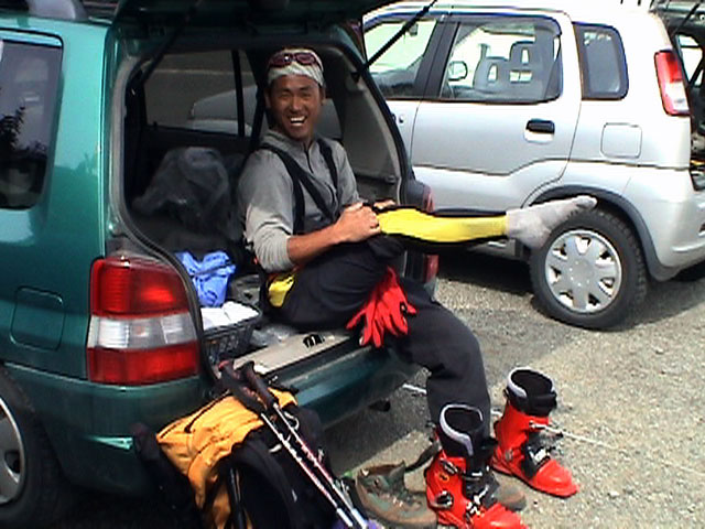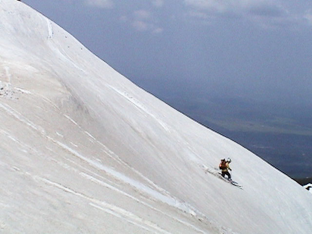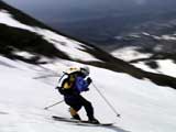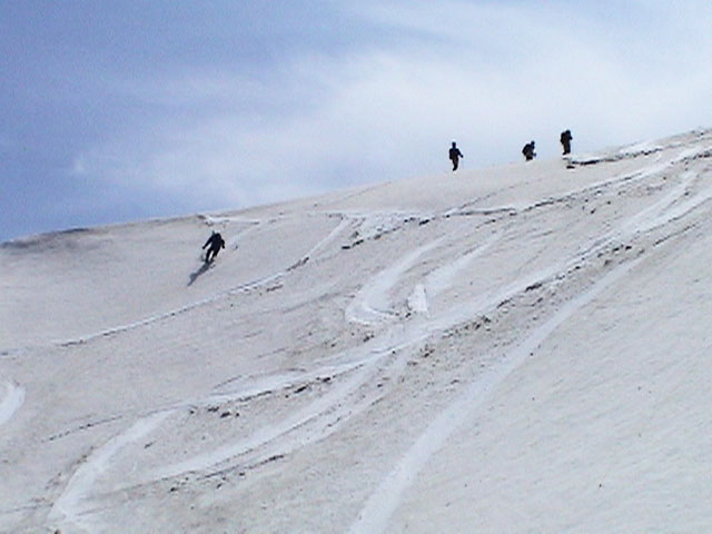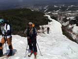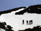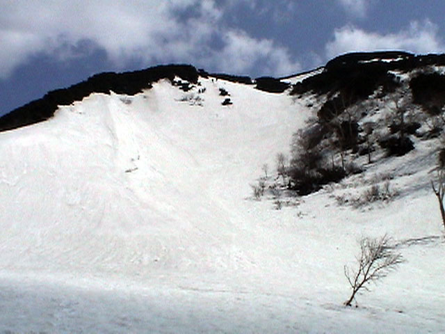 | 2003年5月18日(日) 三段山スキーツアー(ナマコ2) なまこちゃんが、ナマコ尾根を滑る・・なまこがナマコを・・ナマコ2!こりゃおもしろい!(^_^;)ということで、三段山スキーツアーのラストを飾る定番と化したフリコ沢〜ナマコ尾根ツアーへ行ってきた。 登りだしは、なまら暑くてまいった。夏道コースでは、二段目上の雪の回廊が細くてギリギリ。来週にはシール登高は不可能になるだろう。暑いので頻繁に休みを入れてゆっくり登る。 山頂では、アマチュア無線のアンテナを上げている人や、スキーヤー数名が居た。 山頂からフリコ沢への斜面は前日のシュプールだらけだったが、ザラメなので滑りには影響が無い。 この斜面では、Hiroさんのレース仕込みの滑りに圧倒された。板をずらさずに超高速で安定して滑る技術には舌を巻いたね。 滑りやすい雪質だったが、油断すると微妙な凹凸に板が引っかかって転倒してしまうので注意しよう。あと、板が走ってオーバースピードにも陥りやすい。当然ながら転倒すると何メートルかの滑落は必至である。 その後はトラバースしながら斜面を滑り、最後に東谷を登り返して滑った。皆上手い。 絶好調のHiroさんは、ここでも綺麗な二本ラインを引いて滑り降りてきた。 なまこちゃんを滑らせようと画策していたナマコ尾根は、思ったよりもハイマツや灌木の露出が激しく、途中で沢型へ逃げることになってしまった。 二段目へトラバースして夏道へ戻り、ブレーキのかかる雪質に苦戦しながら白銀荘へ到着。 スキー納めをしても良いかなと思えるくらい充実した滑りを楽しめましたとさ。 コース:白銀荘〜夏道〜三段山山頂〜フリコ沢〜ナマコ尾根〜二段目〜白銀荘 気温:15〜17度 風速:0〜2m 雪質:適度なザラメ 雪量:白銀荘から山頂までシール登高可能(ぎりぎり) メンバー:旦那、ゆきこ、なまこ、スー、ぱっちまん、Hiro 合計6名 コースタイム:白銀荘9:00-11:47三段山山頂12:40(1748m)-13:23東の谷(1332m)14:26-15:03白銀荘 |