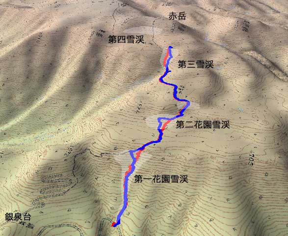 薄く白く示した部分が、雪渓