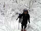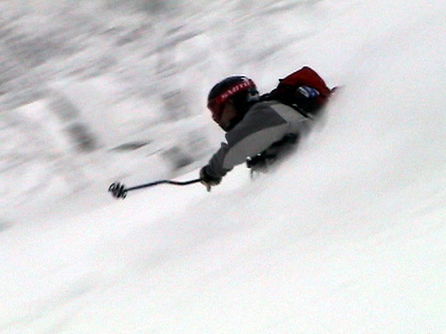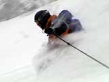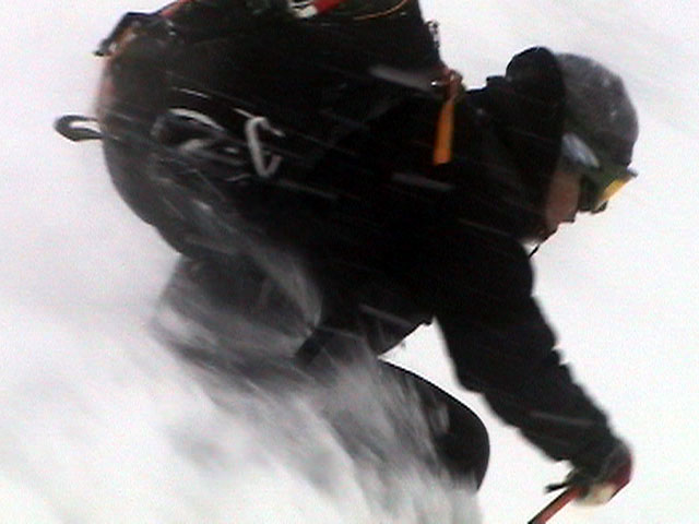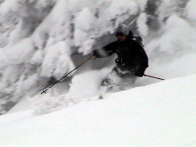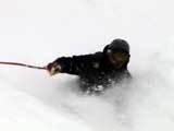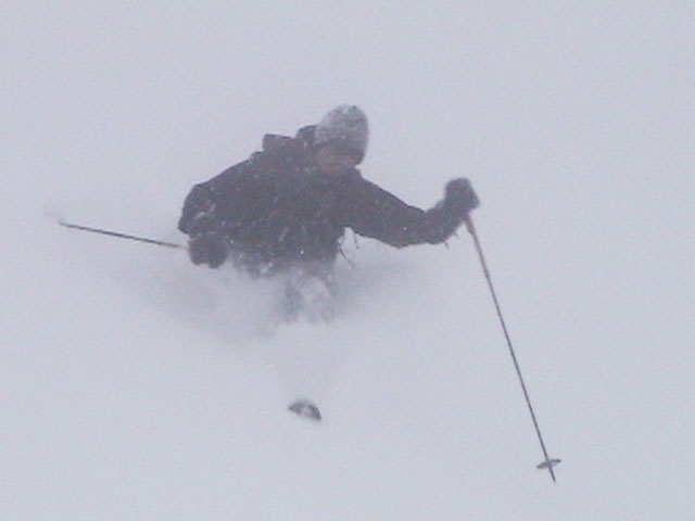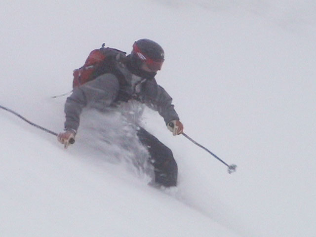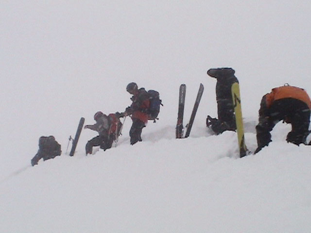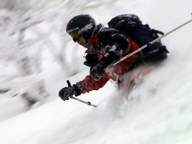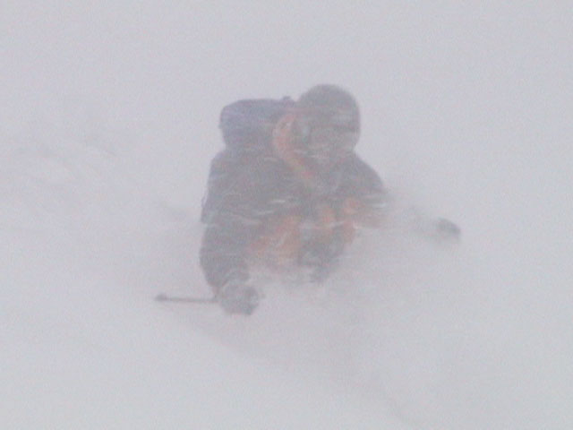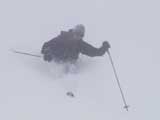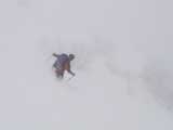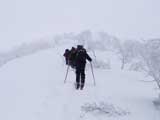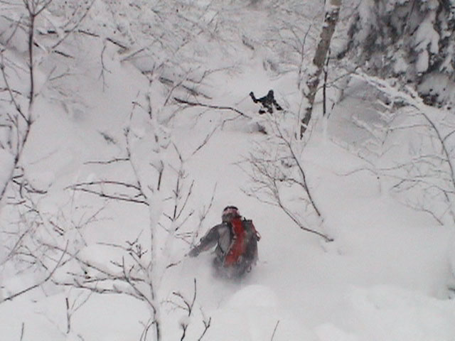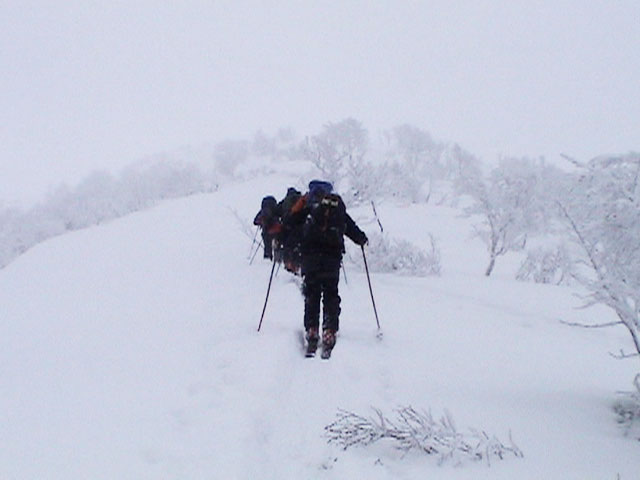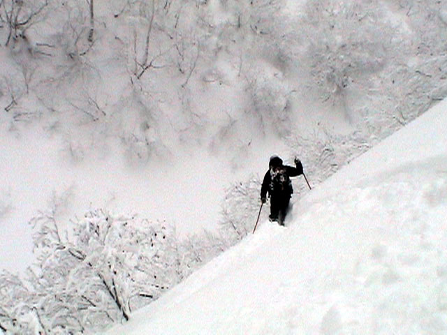 | 2004年1月2日(金) 富良野岳スキーツアー(ベベルイ沢偵察) 危険!ブッシュが濃いので、灌木に激突の危険性高し 大雪だ・・雪が、やたらと降っているが、さほど積もっているわけではないのがくやしい。 年末に、富良野岳をちょこっと偵察した僕ら。雪がありそうな感触は得たが、まだ本命のベベルイ沢の偵察には成功していない。今回はベベルイ沢に的を絞っての偵察ツアーだ。 尾根まではブッシュが濃いが、登りにはさほど支障はない。 樹林帯を越えると、ホワイトアウトに近い状態まで視界が悪くなった。滑降予定地点に到着したが、どうにも斜面が見えない。かろうじて見えるブッシュで斜面を判断する。 ブッシュが濃いが、ラインを選べば滑れないこともない・・・ 弱層試験の結果は、20センチごとに3っの手首でずれる弱層あり。一人ずつ慎重に滑降することにする。 緊張のファーストは、雪崩エアバックを背負った旦那から。雪の状態は悪くない。すぐにブッシュにぶつかるので、トラバースしながらオープン斜面を探す。 ベベルイ沢の斜面の途中で、雪崩を避けるために待避しながら後続と無線でやりとりをしていたら、HATツアーの人達が10人ほどもジャイアント尾根に現れて、びびった。ここでこのような大人数の商業ツアーを見たのは初めてだ。 無線へ:「やばいから、雪崩れたらスキーヤーズレフトへ逃げろよ!」 HATの人達へ:「あ、皆さんこんにちわー」(三段山クラブのさわやかさをアピール) 無線へ:「では、命知らずからスタート!」 そんなこんなで、何度かトラバースしながら滑ってボトムに到着。 ここからは藪地獄。ジェットコースターのようにうねった谷底を、ブッシュにぶつかりながら降りる。 何度、ブッシュに突っ込んだろうか?ヘトヘトになって全員無事に下山。 積雪が、あと1メートルは欲しい。快適に滑ることができるのは、あと半月ほど先になるかもしれない。 今日、ビデオカメラのインフォリチウム電池が頻繁に電源遮断するようになった。どうやら寿命らしい。このような使い方だと、やっぱり寿命は一シーズンだった・・うーん、痛い出費だ。 結果:1580m付近から滑降 天候:雪 風速:0〜3メートル 気温:-9度〜-11度 雪量:不十分 雪質:深さ25センチ程度のパウダー、20,20,20センチに手首でずれる弱層あり コース:バーデン上富良野〜ジャイアント尾根 メンバー:旦那、田中パパ、MARIC、まーぼー、じゃん、toshi、Mix 計6名+1匹 |