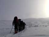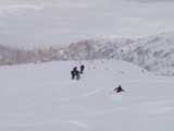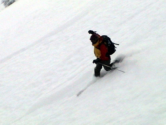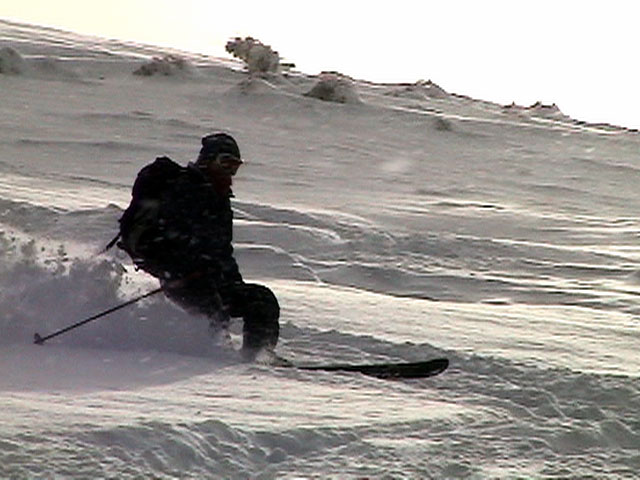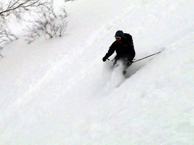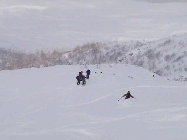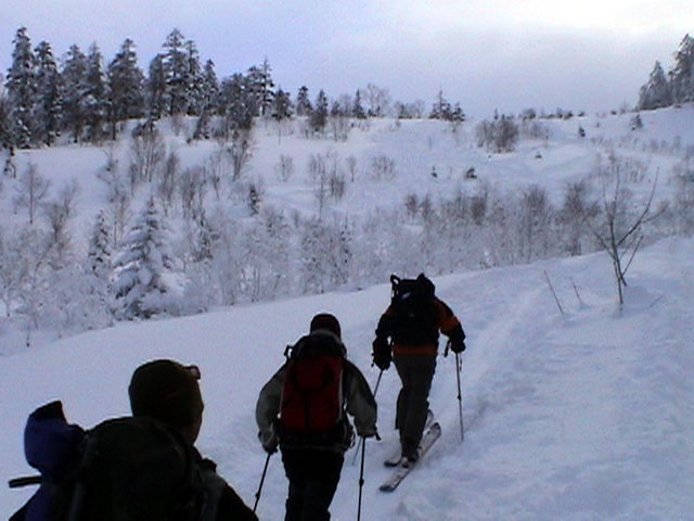 | 2004年1月18日(土) 三段山スキーツアー(東谷&東壁) 危険!雪崩・急斜面・ブッシュ かかなり積雪の増えた三段山だが、それは樹林帯まで。そこから上はウインドパックされた滑りにくい雪質だった。 谷筋に僅かに残っていたパウダーは、昨日今日と入った沢山の山スキーヤーによってすべて滑り尽くされている。仕方なく、一か八かで東の谷に希望を託したところ・・・これが大正解。 少し重めだけど、深いパウダーの滑りを楽しむことができた。 うれしいので、何度も登り返して滑る。 山頂からの眺望もまあまあだったので、合格点の三段山だったと思う。 天候:曇り時々晴れ 風速:0〜2メートル 気温:-15〜-10度 雪量:不十分 雪質:30センチの重めパウダー〜ウインドパック〜シュカブラ コース:白銀荘〜三段山山頂〜東谷 メンバー:旦那、toshi、スー、キャプテン、まーぼー、ぱっちまん、くまちゃん、なまこ 計8名 |