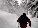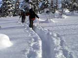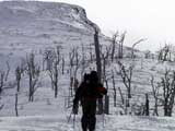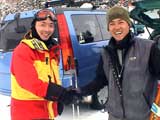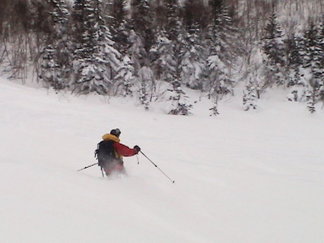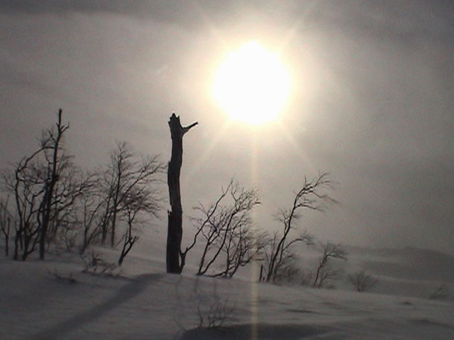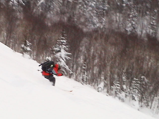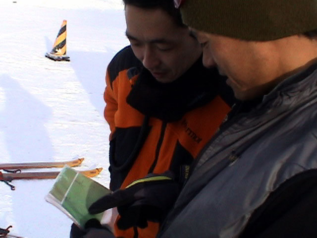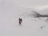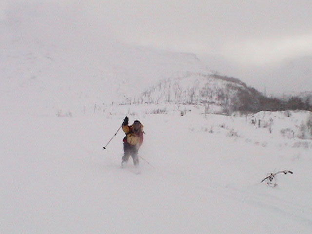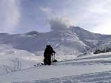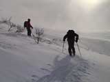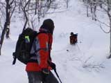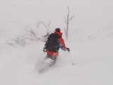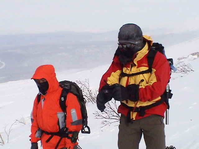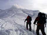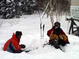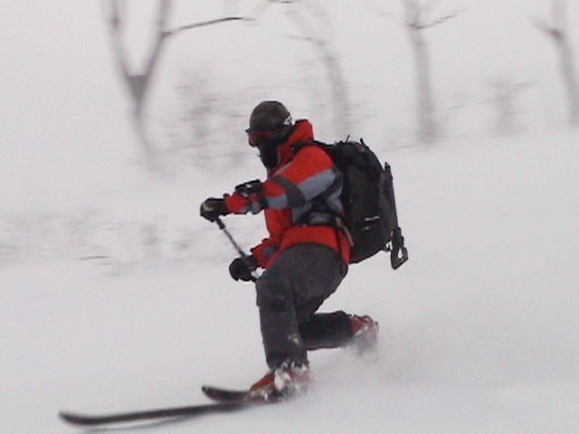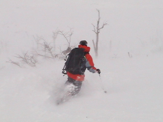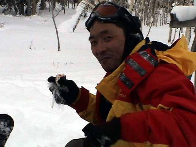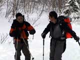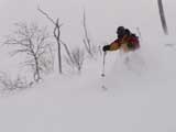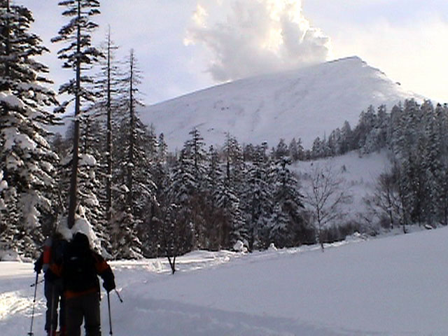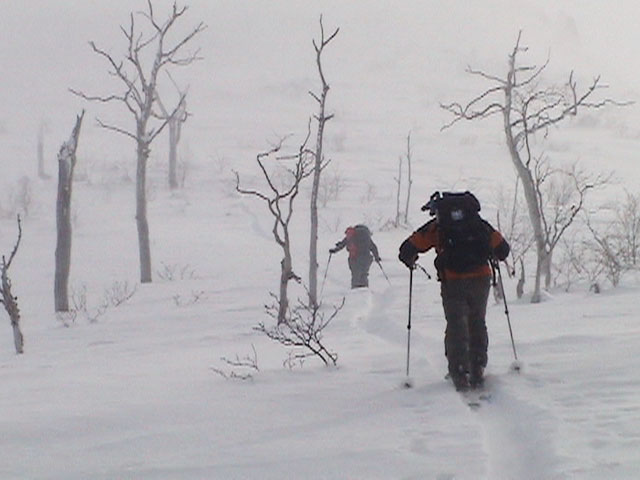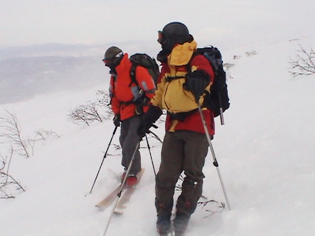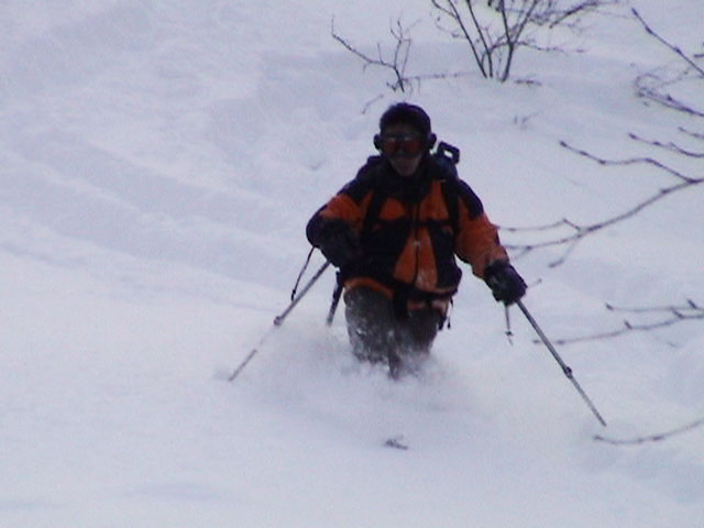 | 2004年1月19日(月) 前十勝スキーツアー(Qaliバックカントリーツアー同行取材) 今日は”ぱっちまん”が主催する「Qaliバックカントリーツアー」に同行取材させていただいた。 お客さんは、旦那の友人でアメリカ帰りの”くまちゃん”CMH(カナダのヘリスキーツアー)も経験しているテレマーカーだ(ただし、BCでのシール登高経験は無し)。 まず、白銀荘駐車場でブリーフィング、入念な装備点検を行った後、出発! この時点での天候は快晴。まず三段山の途中まで上がってから前十勝方面へ滑る。樹林帯では極上のパウダーランを楽しめた。ここは旦那も知らないルートだった。ぱっちまんが時間をかけて独自に開拓したものらしい。 休憩中や行動中の、ぱっちまんのガイド・トークは楽しく、笑いが絶えない。 その後、前十勝方面へトラバースして正面スロープを登っていく。視界が良く遠方の旭岳までくっきり見えて、ついその美しさに見とれてしまう・・ 雪煙の舞い上がる三段山や美瑛岳の稜線も美しい。しかし、稜線上の雪煙は悪天候の前触れ。案の定カバワラを越えたあたりから風が強くなってきて、すぐに地吹雪模様となった。 ここで凍傷を防ぐために全員が目出帽を被る。この山域では目出帽やフェースマスクは必需品だ。 困ったことに今日は風向きの関係で噴煙が斜面沿いに降りてきて息が苦しい。時々咳き込む。 厳しい環境だが、これがリアルな十勝山系の姿だ。美しく厳しい・・旦那が十勝山系が好きな理由だ。 なんとか正面スロープの中腹まで到達したが、さらに風が強くなり登山の続行が難しくなってきた。当初の予定より早く、ここから滑降開始。 滑り出しのコンディションは、浅いパウダーの下にシュカブラがあり、ウインドパックされた雪に板が引っかかりやすい状態。ぱっちまんは、少しでもコンディションの良い斜面を求めてトラバースしながら降りてくれたのだが、旦那もくまちゃんも何度か吹っ飛ぶように転んだ。 カバワラ付近から下では風も収まり、快適なパウダーランを楽しめた。 樹林帯まで降りると風はぴたりと止み、そこでゆっくりと昼食を取ってから帰還。 絶妙なルート取りのおかげで、とても楽しめたツアーだった。途中から急変した天候だけが残念だったが、悪天候を予想してすぐに柔軟に対応するあたり、さすが十勝山系の事を知り尽くしたぱっちまんだと思った。 楽しさと信頼感のあるツアー、プロのガイドの仕事です。 http://www.bc-qali.com/ 皆さんも是非(^_^)。 天候:晴れ後地吹雪 風速:0〜15メートル 気温:-15〜-10度 雪量:不十分 雪質:20センチの重めパウダー〜ウインドパック〜シュカブラ コース:白銀荘〜三段山一段目〜前十勝中腹 メンバー:ぱっちまん(Qali代表 山岳ガイド)、くまちゃん、旦那(取材) 計3名 |
