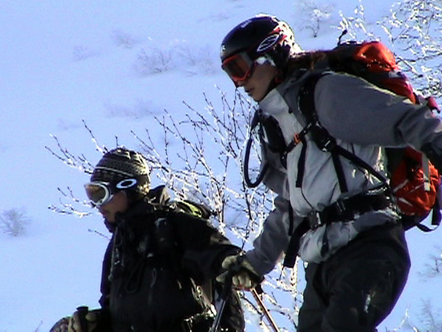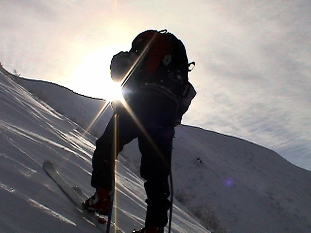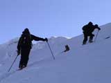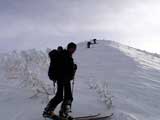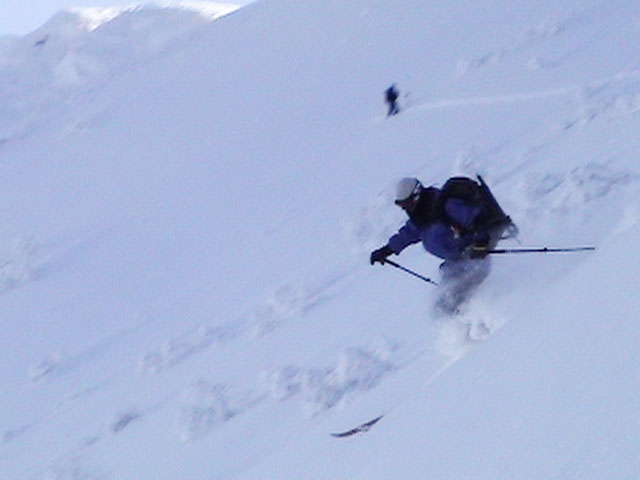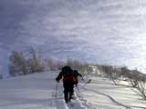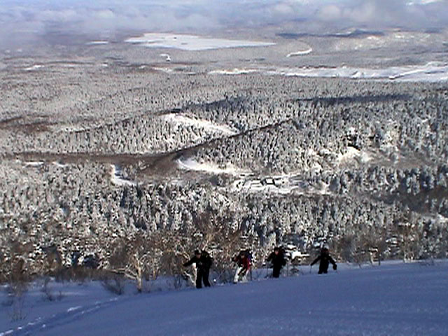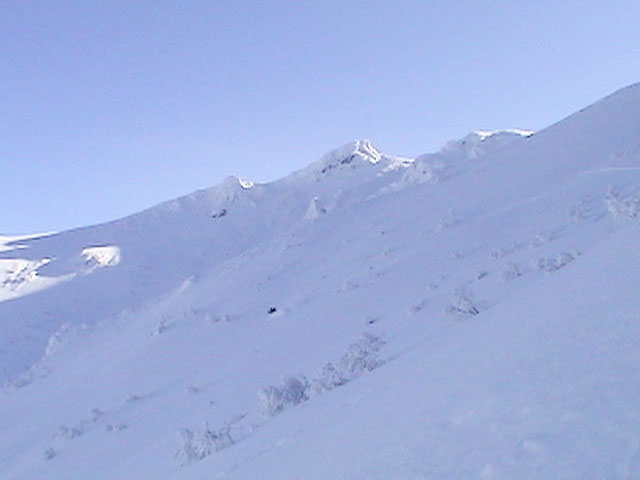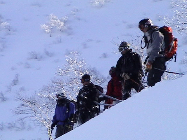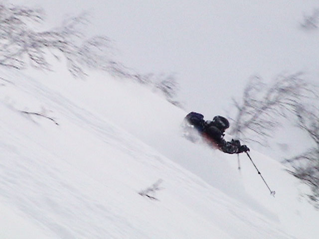 | 2004年1月24日(土) 富良野岳スキーツアー(快晴無風激パウ) あまり期待していなかった富良野岳だが、ほとんど快晴無風の上、極上のパウダーにも恵まれて最高のツアーとなった。 今回はtoshiさんが3時間近く先行して富良野岳に入山し、ラッセルを一人で引き受けてくれてとても助かった。大変なラッセルだったと思う。お疲れ様です。 ジャイアント尾根は、樹林帯を含めてどこも良い雪だった。ブッシュもだいぶ埋まったので、尾根上を降りても面白いと思う。 シャベルテストでは-30センチに弱層があったが、大丈夫と判断。慎重に降りるよう注意する。 1580〜1600mまでジャイアント尾根を詰めてから、各自適当に高度を変えて自分のお好みのラインをベベルイ沢のボトムまで一気に滑った。ちなみにファーストは、ぱっちまん。 ラインによっては、パウダーの下に堅いシュカブラがあったようだが、旦那が降りたラインは底付きのないパウダーで快適そのもの。私以外の人達はパウダーが深すぎてスピードが乗らないとこぼしていた。わはは、私を見習って少し太りたまへ。 オーバーヘッドパウダーを楽しんだ後、北尾根まで登り返し昼食。一時ガスがかかったが、再び晴れてきた。ここから一気に尾根上を直登していく。尾根上は雪が堅くて登りづらいことこの上ない。 1450m近くまで高度を上げてから、再びベベルイの沢へドロップ。こちらも最高の雪質だ・・・というか、富良野岳全体の雪質が良かった。雪質に関しては何も言うこと無し。かっちゃんは、重ためのパウダーだと不満を漏らしていたが、贅沢だよ。それは(翌日は、さらにコンディションの良いパウダーだったらしい)。 北尾根滑降はライン取りが難しく、尾根の下部ではかなりオープン斜面を探した。 その後、定番の北尾根TGRへ。かなりブッシュが埋まって滑りやすくなっていた。所々にデブリがあり、雪崩を警戒しながらの滑降となったが十分楽しめた。旦那的には、ほぼ満点のツアーだった。 天候:晴れ時々曇り 風速:0〜1メートル 気温:-14度 雪量:十分 雪質:30センチの軽いパウダー コース:バーデン上富良野〜富良野岳ジャイアント尾根〜北尾根〜北尾根TGR メンバー:旦那、かっちゃん、toshi(途中合流)、まーぼー、田中パパ、キ、ぱっちまん、しのぶちゃん 計8名 |