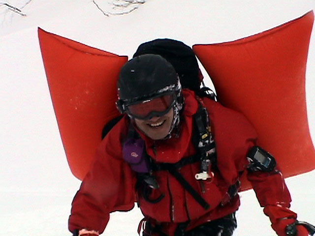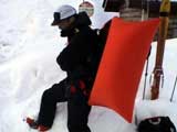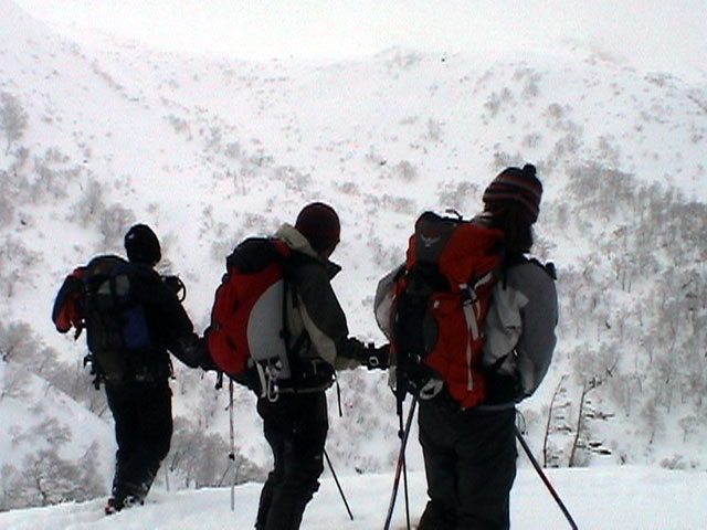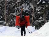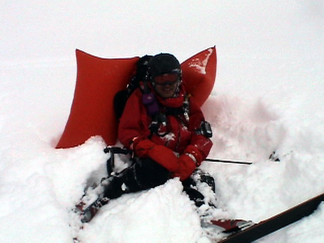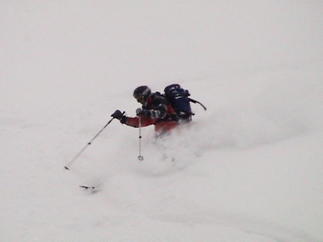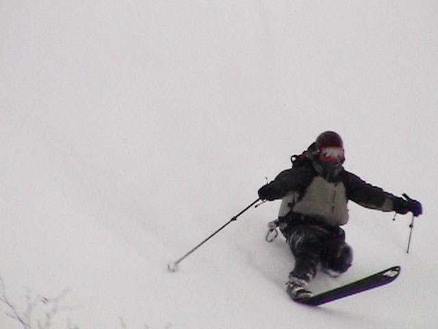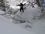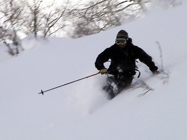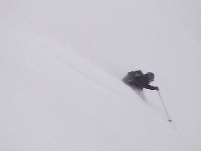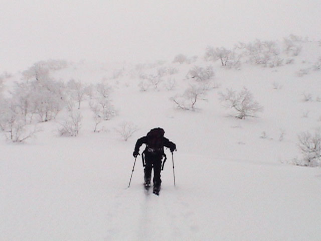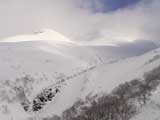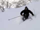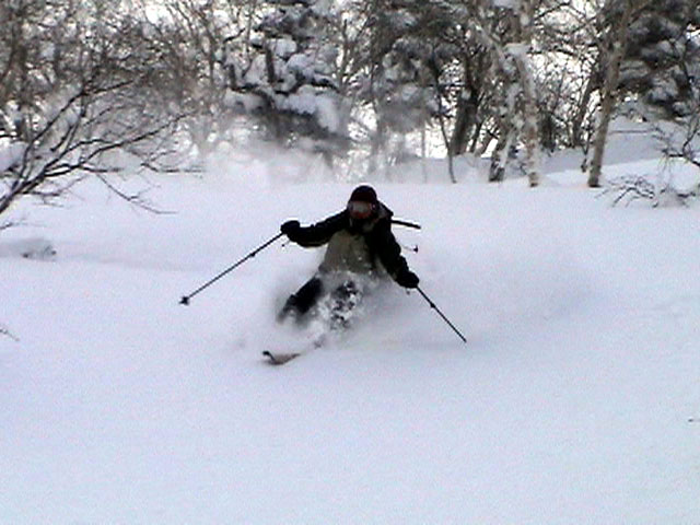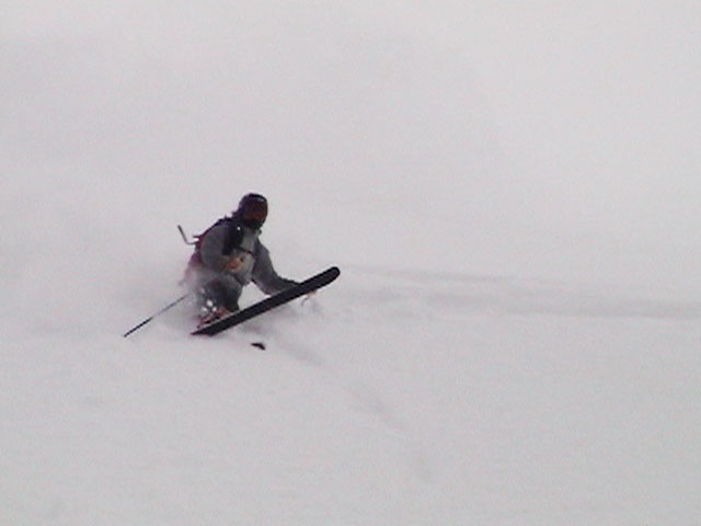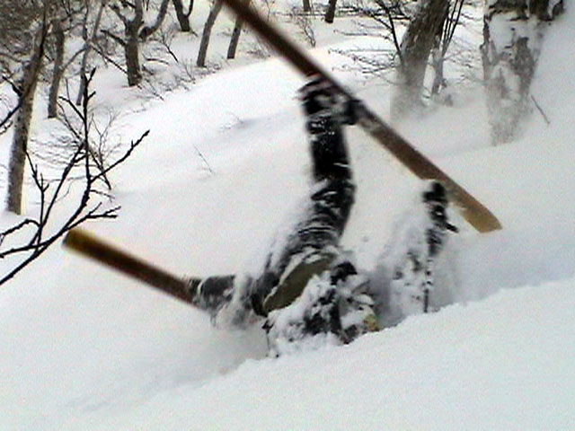 | 2004年2月1日(日) 三峰山スキーツアー(禁断の楽園) 危険!! 雪崩・急斜面 天気予報通り、ほぼ曇り。極希に薄日が差す天候。 前日に田中パパから「パウダーに対するモチベーションを保つために、明日はあえて上ホロをピッケルアイゼンで登ろうと思う・・」などと不穏な電話が入りハラハラしたが、うまいことに上ホロがガスに包まれ、共に三峰山のパウダーを喰いに行くことになった。 車をデポするために立ち寄ったバーデン上富良野前の駐車場は満車状態。もの凄い混み具合だ。 こちらで三段山クラブは三段山隊と三峰山隊の二隊に分かれた。 三峰山隊は、何時も通り凌雲閣の露天風呂横の沢を降り三峰山沢へ。 前回雪崩れた苦い教訓を生かして、何度も場所を変えて弱層試験を行った。 25センチにサンクラストによるものと思われる弱層があったが、比較的強く結合していたので旦那からドロップ!想像以上に素晴らしいパウダーだった。 かっちゃんは、別の斜面をスラフと共に滑り落ちたが、「今の滑りは納得できない!」とご立腹。何ターンかアルペンで逃げたことが許せないようだ。 まーぼはエントリーに失敗し、クリフの上の木に宙づり状態に!無線機からは「やばい〜死ぬ〜!」という悲痛な声が入るが、どうしようもない。「とっとと観念して落ちな!」などと冷たい返事をしていると、まさしくドロップして滑り落ちてきた。 こちらから、三峰山へ向かって登り返し。ガスがかかっている高度ギリギリまで上がって滑りを楽しむことにした。 滑降地点へ到着した時には、ガスっぽかったが、ドロップするときには奇跡的に晴れてきて気持ちよく滑ることができた。 よし!調子が出てきた。 再び三峰山沢へ、各自気に入った斜面を選びながら滑っていく。無線機で連絡を取り合っているので、この辺は融通が利いて助かる。 今度は、雌鹿ノ滝付近の壁へ登り返し。昨日イシバシさん達が滑り降りたホコ岩の東側シュートのシュプールが、良く見えた。 ここで旦那だけが斜面の途中へトラバースして入って、皆から見えない所で弱層試験を行った。 撮影準備が整い、無線でドロップの指示を出そうとしたら・・「ボム!プシュー」と雪崩エアバックが作動!カメラがトリガーハンドルに引っかかったらしい。 「えー、こちら旦那、雪崩エアバックが誤作動して開いていますが、気にしないで滑って下さい」「・・・了解」 皆、なるべくこちらを見ないようにして急斜面を滑っていく。唯一マーボだけがまともに旦那を見てしまい、爆笑してバランスを崩し爆裂転倒!いや、悪いことをした。 その後、雌鹿ノ滝の直下に集まった皆から大笑いされてしまった。二万円の一発芸。これだけ笑われたら元はとれたかも・・ 哀れな旦那はエアバックを膨らませたままバーデン上富良野へ・・うーん。高く付いたツアーになったが、新しい斜面を開拓できて良かった。 天候:曇り、極希に晴れ 風速:0〜5メートル 気温:-11度 雪量:十分 雪質:25〜30センチの軽いパウダー コース:凌雲閣〜三峰山沢〜三峰山テラス〜雌鹿ノ滝〜バーデン上富良野 メンバー:旦那、かっちゃん、まーぼー、なまこ、田中パパ、toshi 計6名 |