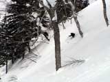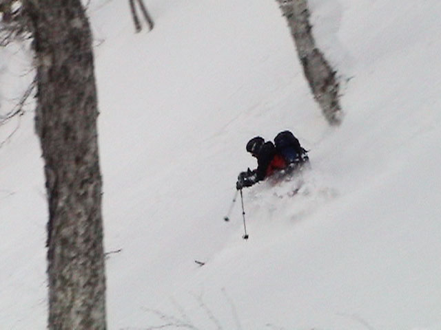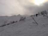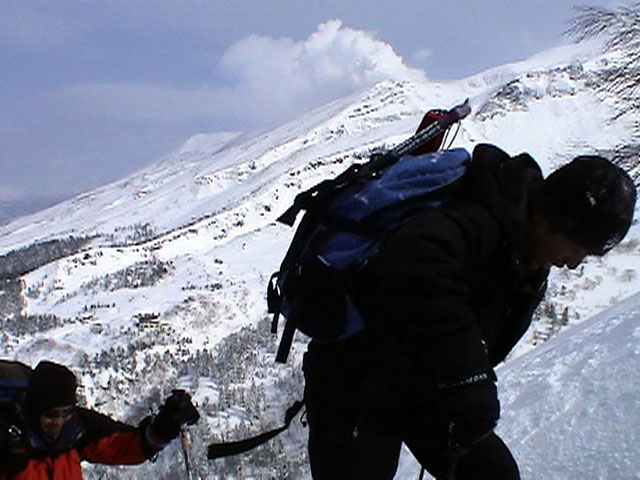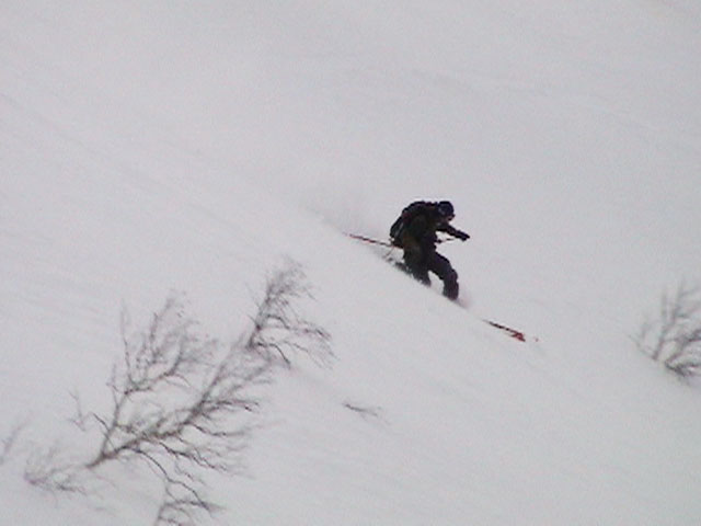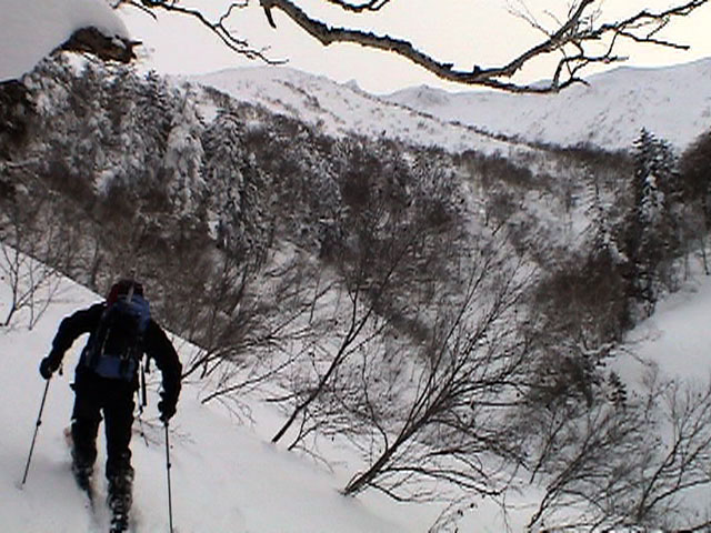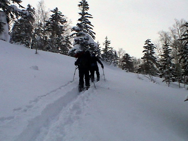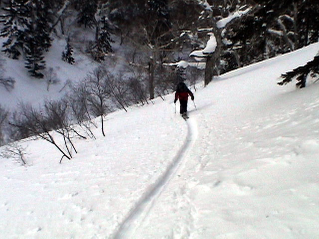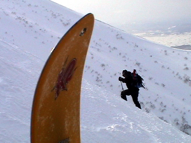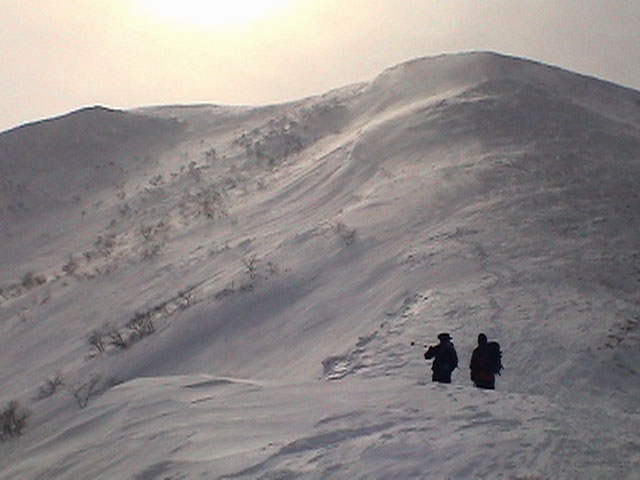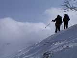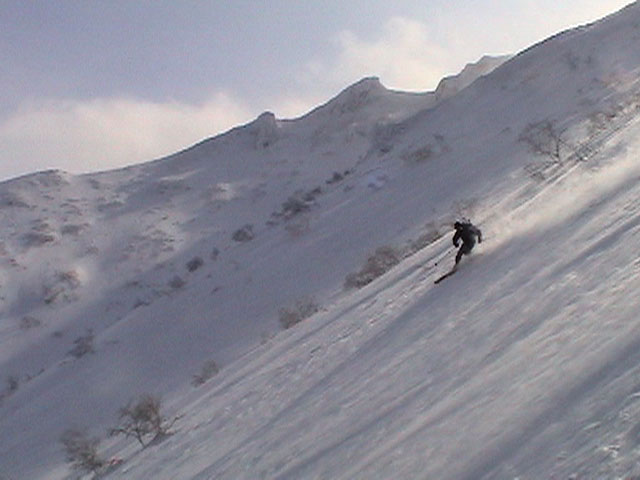 | 2004年2月14日(土) 富良野岳スキーツアー(重雪特訓) 朝、出発間際に田中パパから電話が入った「もしもし、田中パパです。風邪引いたので、今日は行けません」。 おっとー!今日は田中パパとtoshiさんの三名でマニアックな登山を企んでいた旦那だったが、急遽予定を変更してかっちゃんと富良野岳を滑りまくるプランに変更。 かっちゃんのイカした軽ワンボックスでバーデン前富良野に到着した時には、ドロドロとした暗雲に包まれていた富良野岳だが、登り始めると見る見る晴れ間が広がり・・最後には快晴模様になった。 富良野岳はトレースだらけだったが、どれ一つとして使えるトレースが無く、だいぶラッセルを強いられた。 ジャイアント尾根1550mに到着。雪質はうんざりするほど難しいウインドパック。ファーストのかっちゃんが、道東で鍛えた悪雪テクニックでぶっ飛ばす。ベベルイ沢の下部からは若干乗りやすい雪質になり、難しい雪を乗りこなす楽しみを味合う余裕ができた。 次に、ボトムから北尾根の1550mまで登り返し。こちらの雪はジャイアント尾根より悪かった。かっちゃんですら何度も頭から転がる。森林限界付近からは再び雪質が少し良くなったので、ストレス発散とばかり、三度ほども登り返して重い新雪の乗りこなしの練習を楽しんだ。重雪特訓! 下山したのは15時30分。雪が難しかった割には一日を目一杯中楽しめたツアーだった。 天候:晴れ時々曇り 風速:0〜5メートル 気温:-6度 雪量:十分 雪質:約30センチの深さのウインドパック コース:バーデン上富良野〜富良野岳ジャイアント尾根〜ベベルイ沢〜北尾根〜ベベルイ沢〜北尾根TGR メンバー:旦那、かっちゃん、toshi 計3名 |