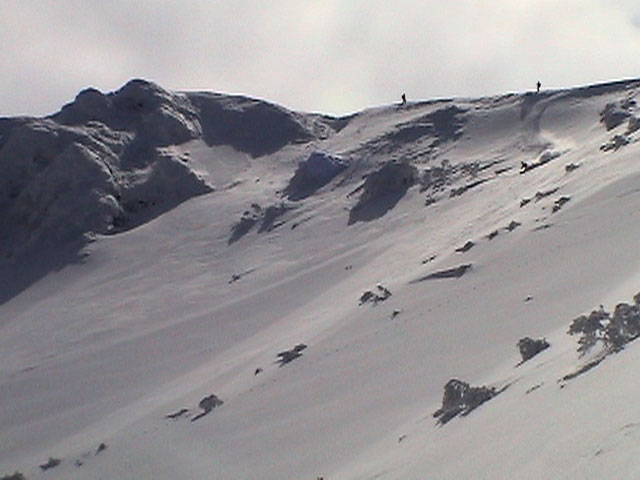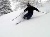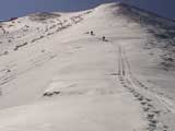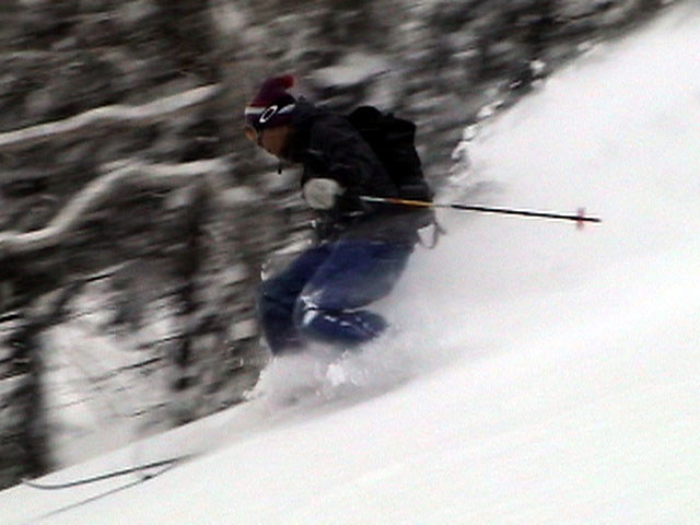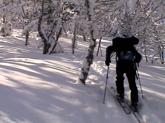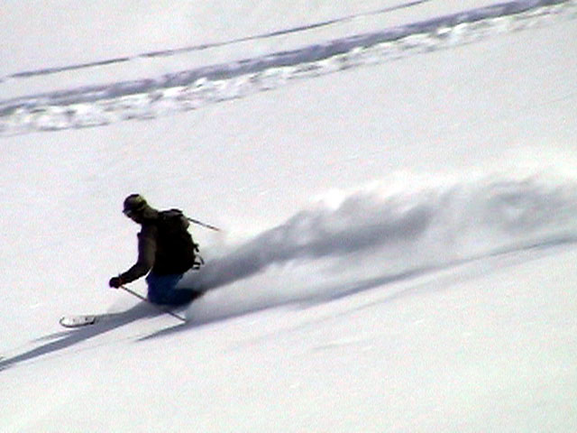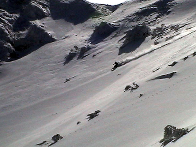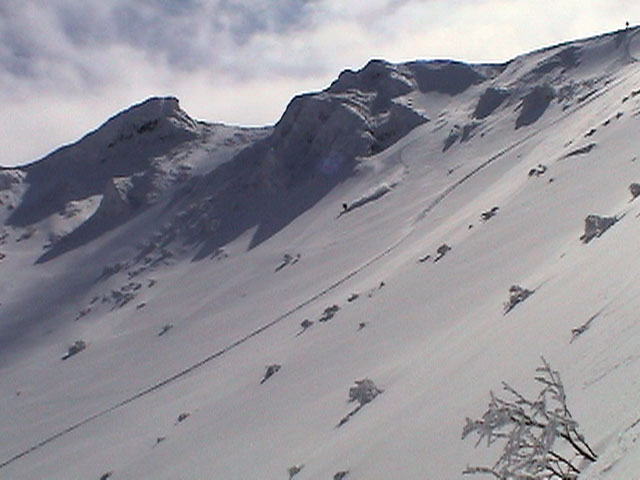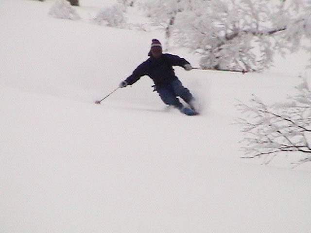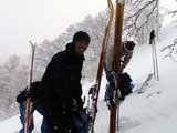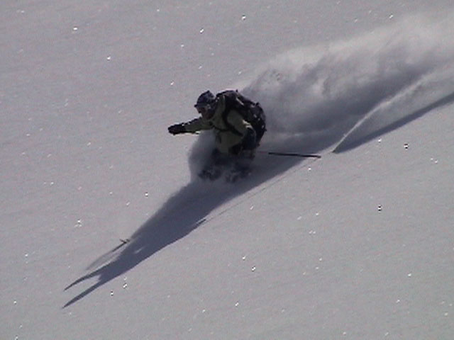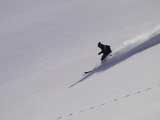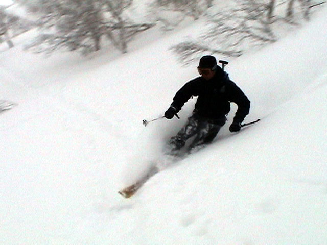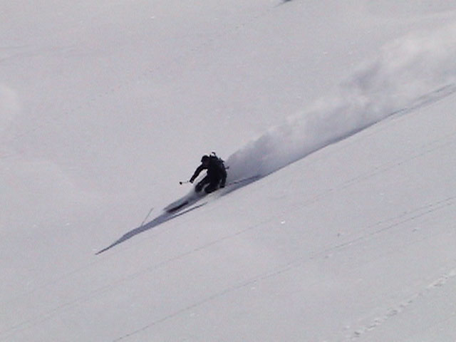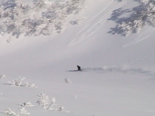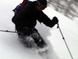 | 2004年3月21日(日) 富良野岳スキーツアー(ホコ岩からの滑降) 危険! 滑落・急斜面 当初は、音江山へ向かうはずだったのだが、快晴という事で急遽目的地を富良野岳に変更した。 今シーズンは、あまり快晴の富良野岳の画が撮れていないからだ。 駐車場でY田さん夫妻やNABゆーださんと出会い、双方が少人数であることから一緒に行動することになった。Y田さん達の登りは強烈に早い。ジャイアント尾根上に上がるまで1時間15分!ほぼ満車状態の駐車場を出発したのに、僕たちはいつの間にか先頭を登っていた。もちろん旦那は付いていくのがやっと。 ジャイアント尾根から見渡す限りの斜面は、すでに土曜日のシュプールだらけだったが、何故かホコ岩直下からベベルイ沢のラインだけは空いていたので、集中的にそこを攻めることになった。 しかし、そこへ到達するまでが大変。滑落しそうな斜面を延々トラバースする。シールが付いているとエッジが効かないので、トラバース部分だけシールを外して、登りで再びシールを取り付ける。 このトラバースはきつかった。うっかりエッジが外れると何十メートルか確実に落ちる。 緊張のために足を震わせながら旦那は撮影のための別のポイントへ。ツボ足になって、不安定な足場の上の岩にかじりつくようにして撮影ポジションを定める。 そこから見えるホコ岩は逆光気味で美しかった。無線で連絡を取り、カウントダウンの後ライダー達が滑降開始! ファーストはY田さん。・・・素晴らしい!最高のロケーションをバックに、長大なロングターンでどんどん加速して滑っていく。思わず撮影する手が震えた。 かっちゃん、ゆーださん、みっちゃんも見事な滑りを決めてくれた。 この撮影の合間に、旦那は足を滑らせて岩場から転落してしまった。一回転して落ちたが、なんとか体を捻って、足が宙ぶらりんの状態で雪の塊にしがみついて、はい上がることができた。危なかった・・ やっと自分の滑降の番だ。森林限界から上の雪質は、ガリガリのアイスバーンと薄いパウダーが交互に現れるような状態が多くて油断できなかったのだが、このラインだけは奇跡的に良い雪質だった。 スピードが乗りやすく、スプレーが上がる。一気に高度を落としたために耳がキーンとなった。最高だ! すぐに登り返し。途中でHYMLオフミの皆さんと出会うことができた。 同じ場所を滑ったのだが、昼から天候が急変してホワイトアウトに近い状態になってしまった。 その後、満足した僕らは北尾根上に良い斜面を選びながら帰路についた。このあたりは一見コンディションが良さそうなのだが、カリカリバーンの上に薄いパウダー乗っている状態なので、うっかりするとエッジが抜けて危険だった。 旦那は、まさしくエッジが抜けて大木に激突!長いスキー人生の中で、ブッシュ以上の木に激突するのは初めての経験だった。その時に左足のふくらはぎを強打。一瞬「やばい!折れたか!?」と思ったが、立ち上がることが出来てホッとした。滑りにも支障は無かったが、今朝見てみると、強打した部分は内出血してどす黒くなっていた。 樹林帯の中は、気から落ちた冠雪がブロック状に固まっていて、危険だった。 それなりに危険でキツかったが、とても充実したツアーだった。Y田ファミリー、NABゆーださん、同行させてくれてありがとうございました。 天候:晴れ後雪 風速:0〜3メートル 気温:-7度 雪量:十分 雪質:アイスバーン〜重めのパウダー10〜20センチ コース:バーデンかみふらの〜ジャイアント尾根〜北尾根 メンバー:旦那、かっちゃん 計2名 |