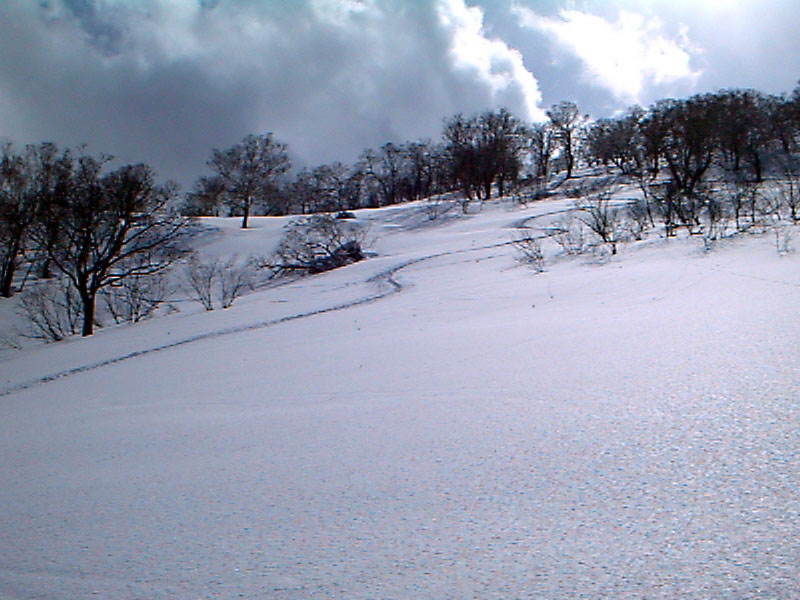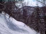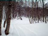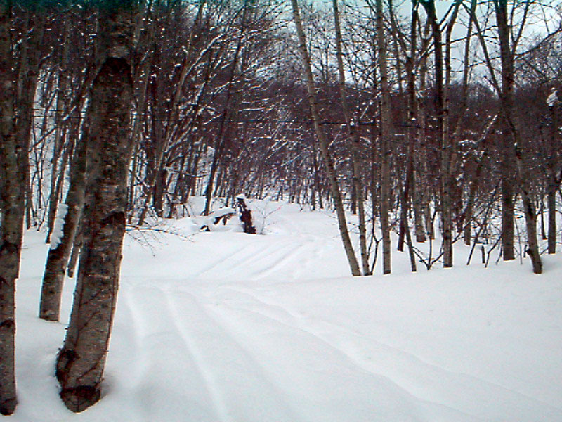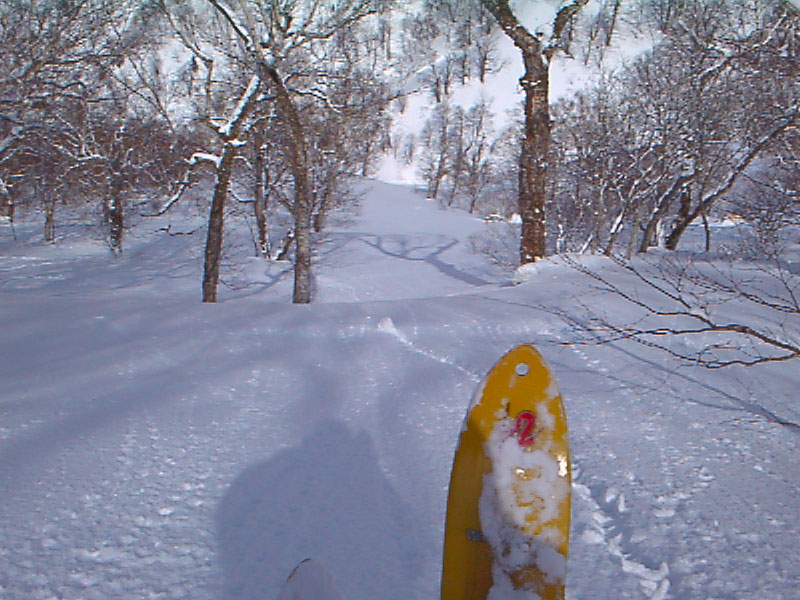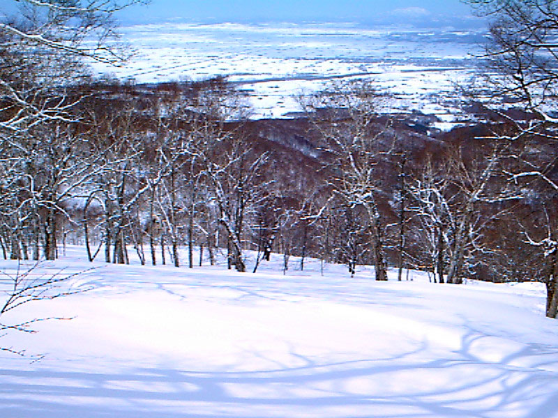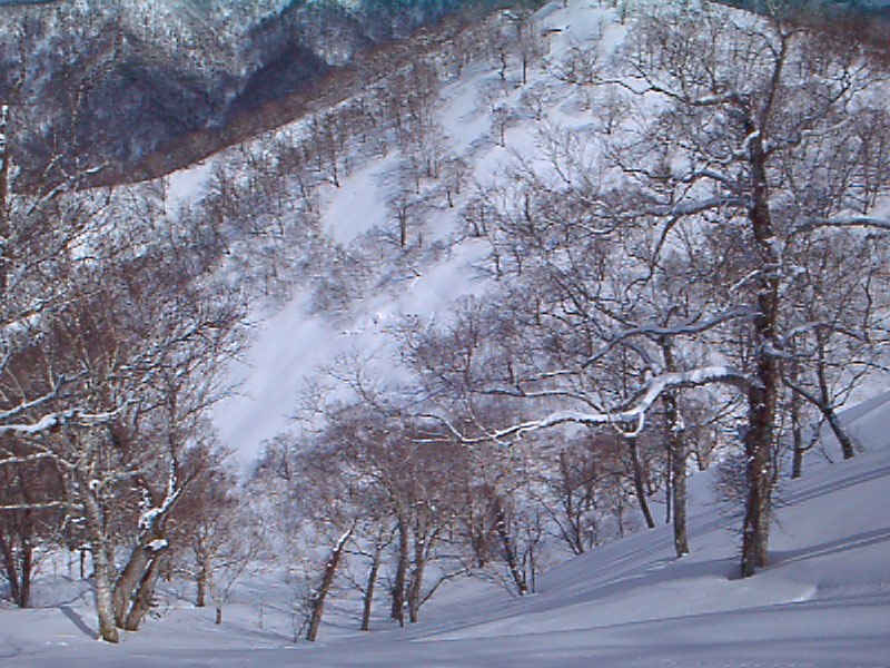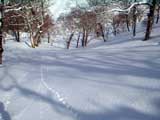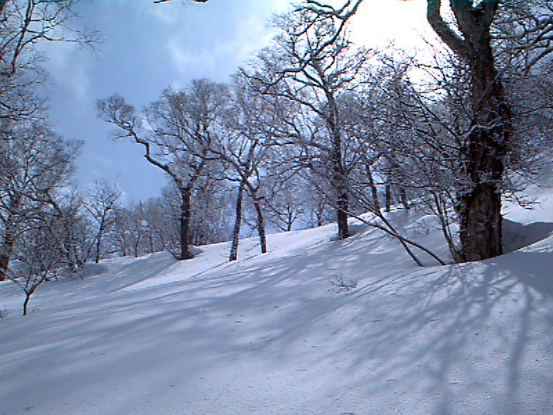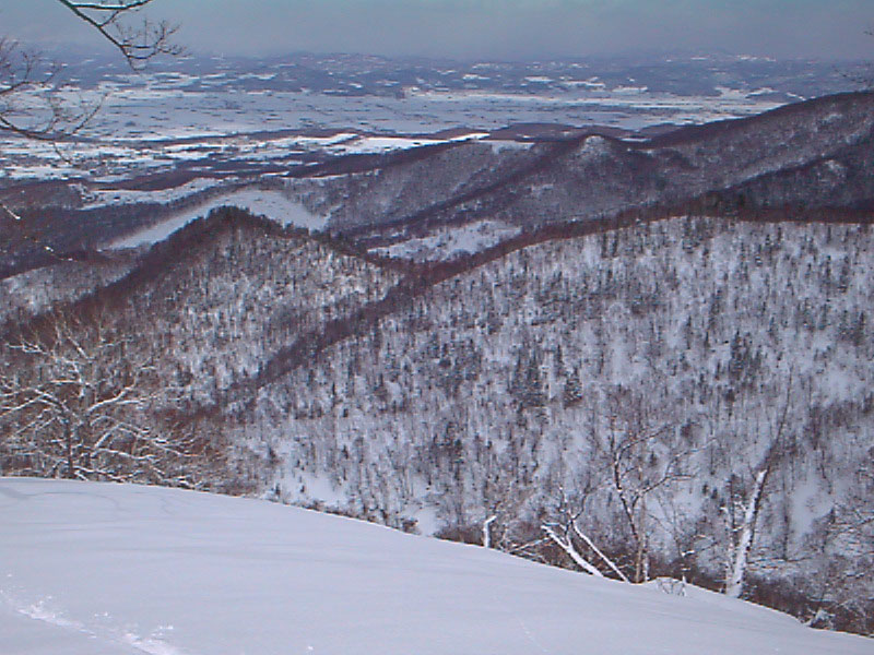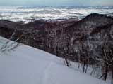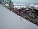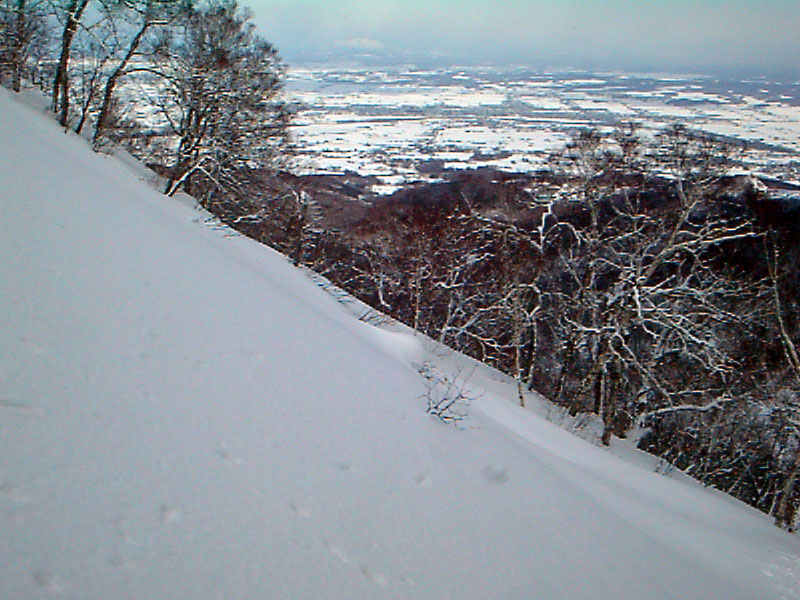 | 2004年4月4日(日) 音江山スキーツアー(魅力的な北斜面) 危険! 雪崩(北斜面滑降時) 現先々週から狙っていた音江山に、今日やっと行くことができた。ソロの気楽さで9時過ぎにのんびりと我が家から出発。 しばらく走ってからシールワックスを忘れたことに気づき、代用するために途中のコンビニで墓参り用に売っていたロウソクを購入。 深川ICの近くにある沖里河温泉から入山したが、温泉の手前1Km程は除雪の状態が悪かった。4WDでなければたどり着くことができなかったと思う。道には、車でのアプローチを諦めた人のものらしい山スキーのトレースがうっすらと残っていた。 天候は、最初は時々吹雪模様だったが次第に晴れてきた。 他に人影はなく、誰とも出会うことのないツアーだった。こんなツアーは久しぶりだ。 10時に登山口を出発。ルート取りには少しコツがいるが、うまくルートを取れると簡単に手前の尾根を越えることができる。 終始、深さ30センチ程度の重い雪のラッセルがずっとつづく。気温が上がってくるとシールに雪が付きやすくなって、途中で二度ほどロウソクのお世話になった。効き目が無くなるのは早いが、十分シールワックスの代用になった。 滑れる斜面を探しながら登りたかったので、通常は北西の尾根を登るところを北斜面をジグザグに登り、山頂からは見えないところに非常に魅力的な滑降ラインをいくつか見つけることができた。 このあたりは、オープンバーンと疎林の組み合わせが本当に綺麗だった。 斜度は上がるにつれて急になっていき、山頂直下には全層雪崩を起こしそうな亀裂が発生していた。 北斜面を滑るには、十分な雪崩対策が必要だろう。 北西の尾根は概ね緩やかな傾斜になっており、こちらは雪崩の心配なく滑降を楽しむことができそうだ。 かなり寄り道をしたため、12時過ぎにやっと山頂へ到着。登山口から2時間以上かかってしまった。 音江山の山頂は広く平坦で樹木が無く、360度素晴らしい展望だった。久しぶりに一人だけの静けさをたっぷり楽しんだ。 いよいよ北斜面を滑降開始。 登るときに目を付けていた、高度差250mのラインを思いっきり滑った。 北斜面のためか雪質が良くて、この時期にしては望外のパウダーを楽しむことができた。何度も登り返して楽しみたくなる斜面だ。帰りはあっと言う間で、一時間もかからずに登山口の温泉に到着した。平坦な部分では雪は派手に腐り始めていた。 登山口までのアプローチに不安があるが、スキー滑降のための山としては、とても魅力的だと思う。 天候:雪のち晴れ 風速:0〜3メートル 気温:0〜5度 雪量:十分 雪質:重めのパウダー20〜30センチ コース:沖里河温泉〜音江山 メンバー:旦那 計1名 |