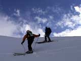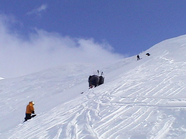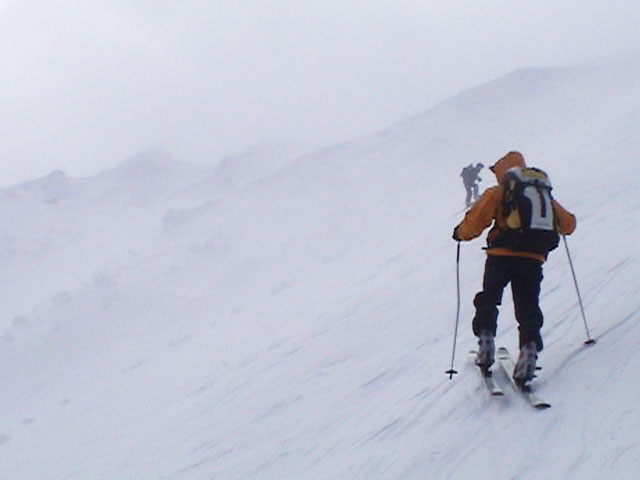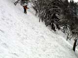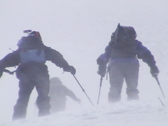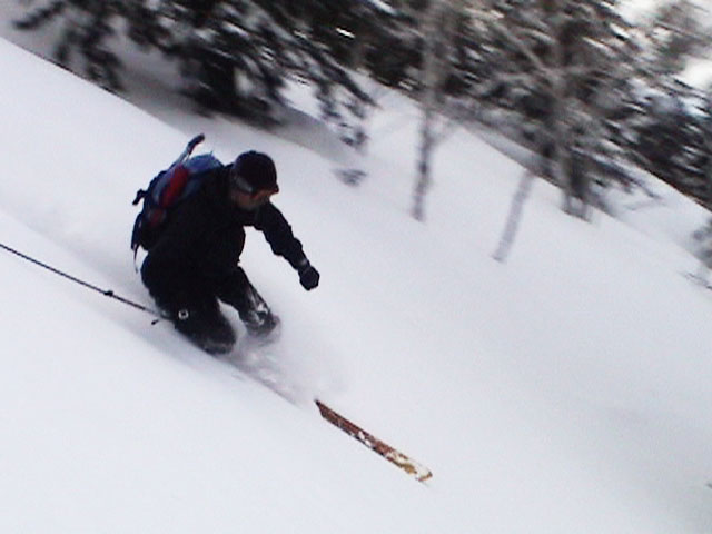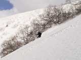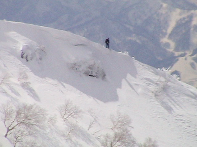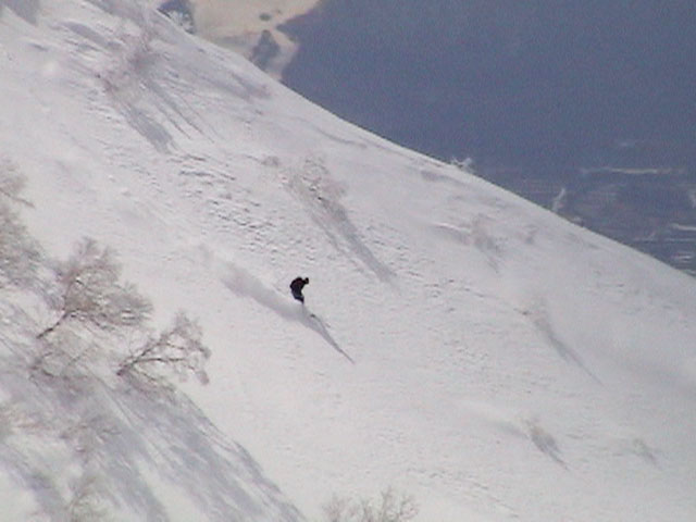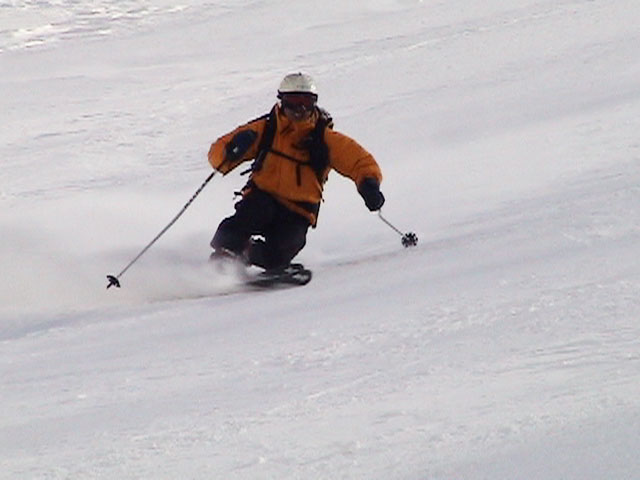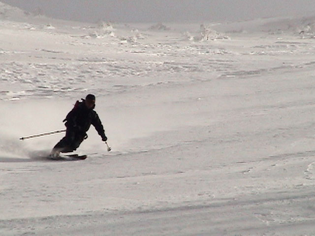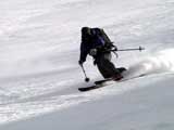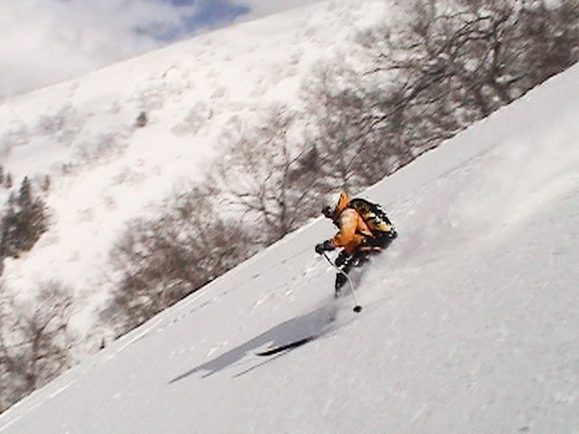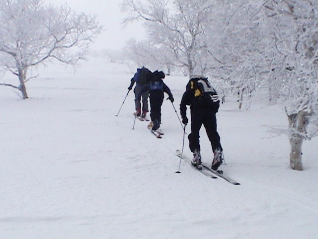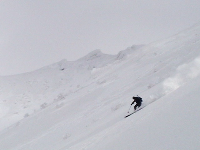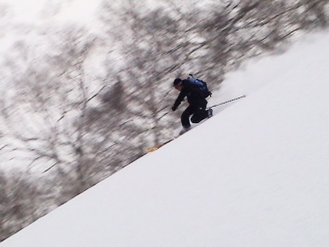 | 2004年4月10日(土) 富良野岳スキーツアー(雪質なんでもあり) 一日中晴天という予報だったが、曇天のうえ尾根上は15mの強風が吹き荒れていた。 富良野岳は久しぶりだが、やっぱりここへ来るとホッとする。 勝手知ったる山なので、一ダースくらいのコースの中から好きな条件の所を選べるし、山中で知り合いは声を掛けてくれるし・・リラックスして、じっくりとツアーを楽しむことができた。 雪質は、滑りやすい重めのパウダーからかなり手強いスーパーモナカまでなんでもありで、結構派手に転ぶ者が続出した。 スーさんは、一本目の滑降でオニューのポールをぐんにゃりと曲げてしまった。 旦那は悪雪に板が刺さって頭から吹っ飛び、まるでペンギンが氷の上を滑るような姿のままプチ滑落。途中でMARICさんをボウリングのピンのように跳ね飛ばし(すみません)、最後にぱっちまんが旦那のヘルメットを受け止めるようにして止めてくれた。 さぞや皆に心配を掛けただろうと思いながら起き上がってみたら、皆こちらを見ながら大爆笑していた・・・本当に最高の仲間達だ。 盛り上がって、3回登り返して7本滑り、気が付いたら8:30〜16:30までたっぷり滑った富良野岳だった。 天候:曇り時々晴れ 風速:0〜15メートル 気温:-5度 雪量:十分 雪質:アイスバーン〜ウインドパック〜重めのパウダー〜スーパーモナカ コース:バーデンかみふらの〜ジャイアント尾根など メンバー:旦那、かっちゃん、ぱっちまん、スー、MARIC 計5名 |