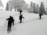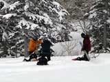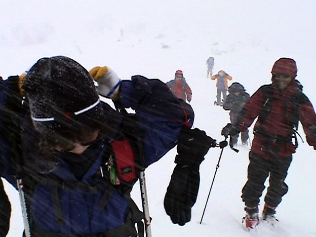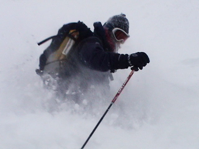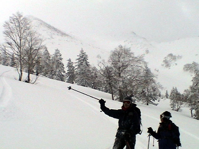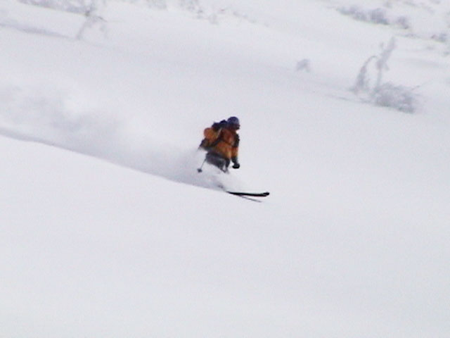 | 2004年4月25日(日) 三段山スキーツアー(ホワイトアウトから奇跡のパウダーへ) 今回の三段山クラブツアーは、人数が多いため二隊に分かれて富良野岳と三段山に入る事になった。 三段山隊は「楽しく、ゆっくり、まったりツアー」がポリシー。ペースが速いと怒られるルール。 登り始めは天気が良かったのだが、すぐにガス〜ブリザード〜ホワイトアウトへ。 最初は上着だけで歩いていたのだが、すぐにジャケットを着て、フードを被り、目出帽のお世話になることになった。ここはまだ厳冬期だ。 GPSがあるから道迷いの心配はないのだが、なにしろ目の前が真っ白で何がなにやら・・こういう時には、滑る目標としてのデポ旗が欲しい。 これでは山頂まで行ったところで下りで苦労するだけだと判断し、山頂手前300mで下山開始。手探り状態での滑降。雪質だけががなまら良い。 途中から西へトラバースして斜度、雪質共に最高の斜面に立つが・・・やっぱり「なんも見えん」。 自分が今滑っているのか止まっているのかすら分からなくなり、錯覚して混乱する。しばらく天気待ちをするが、いっこうに視界は晴れてくれない。富良野岳隊へ「視界不良のため下山」と連絡して覚悟を決めて滑降する。 ここで人間ポール作戦始動。スキーヤーを前方へ尺取り虫のように繰り出して、それを目標に滑る。5名も並べば、相当な距離の斜面の様子が分かる。これは上手く行った。 なんとか樹林帯へたどり着き、ツリーテントの中で豪華なランチ。暖かいカップラーメンを頂く。 視界は悪いが、気温は低くないので、久しぶりにまったりした時間を過ごすことができた。 旦那としては非常に楽しい。視界不良?なにを贅沢な・・今、自分が山中に居ることが出来るだけでも幸運なのに、さらに雪質が良いと来れば大ラッキー。楽しくなくてはバチが当たる。さあ、盛り上がってきたぞ。そういえば視界も良くなってきた! ここからシールを付けて登り返し、西斜面の上部に着いた頃には視界が晴れて日も差してきた。 準備の出来た者から、ノートラックの大斜面へドロップ!パウダーが吹き上がる。楽しすぎて笑いが止まらない。さあ、もう一回登り返し・・ 富良野岳隊から「良すぎてヤバイ!」との無線が入る。こちらも「いや、こっちの方が良すぎるぜ!」と言い返す。 4月下旬にしてこのコンディション。やっぱり十勝山系は最高だ。 まったりツアーを盛り上げてくれたスー家、N崎家に感謝いたします。旦那の状況判断としては、ランチ場所の高度を下げすぎたのが反省点です。すみません。 天候:晴れ〜曇り〜雪〜晴れ 風速:0〜5メートル 気温:-3度 雪量:十分 雪質:パウダー!(20〜30センチ) コース:白銀荘〜三段山山頂直下ピストン メンバー:旦那、スー、キャプテン、N崎、しずちゃん 計5名 |