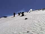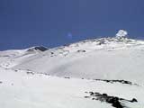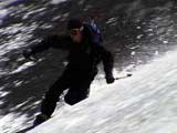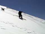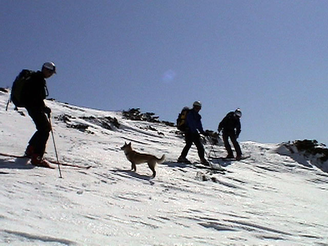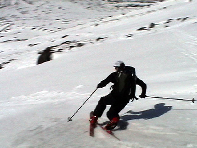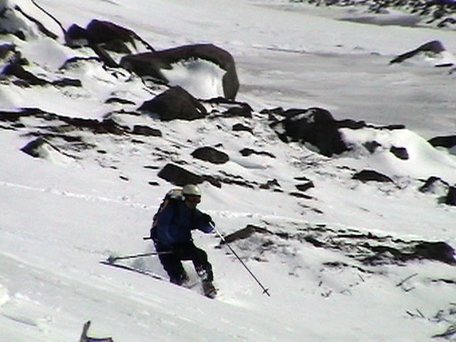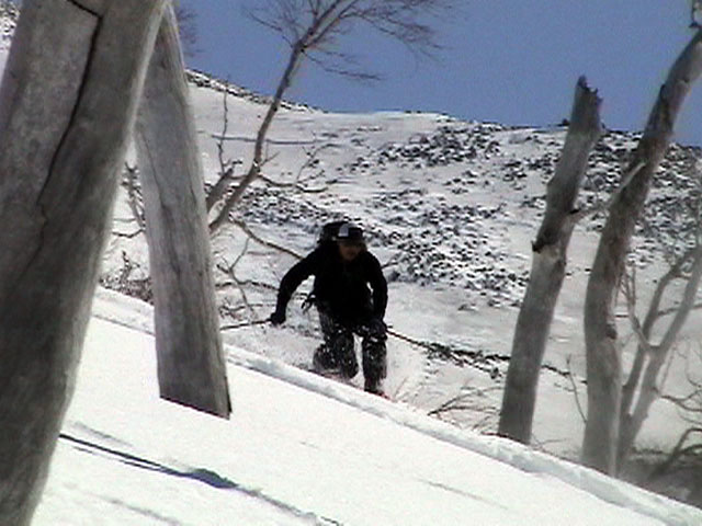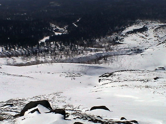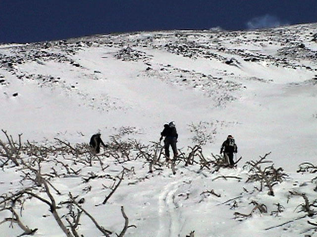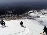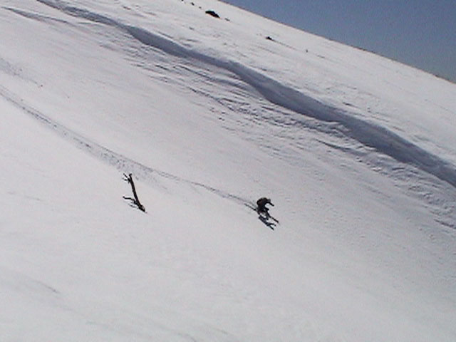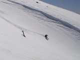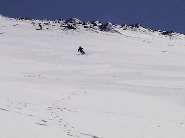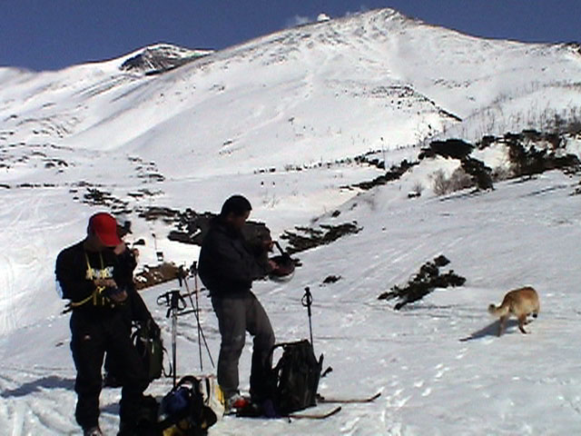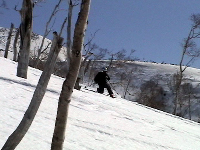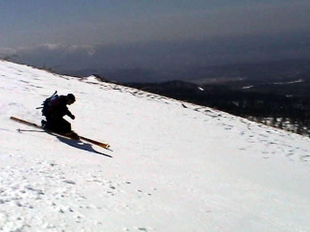 | 2004年4月29日(木) みどりの日 前十勝スキーツアー(今シーズン初前十勝) 現地で行き先を協議した結果、今シーズン初の前十勝ツアーを行うことになった。 天候は久しぶりのド快晴。稜線は風が強かったようだが、それ以外はほとんど無風。非常に暑いツアーとなった。 前十勝は、火山活動の活発化や積雪量の少なさなどから敬遠していたのだが、今日滑ってみた感じでは特に問題は無かった。 S62火口の噴煙の様子は何時もと同じに見えたが、警戒して近寄るのは止めた。 適当に高度を上げてから滑ってみる。火山灰で黒くなった雪面の上に薄い透明な氷が張っているという変な雪だった。それをバリバリと割りながら滑る。あまり面白くない。ハードバーンもやっぱり面白くない。 昼食をゆっくり摂って雪が緩むのを待った。ビールを回し飲みする。のんびりしていて良い感じだ。 午後からは期待通り雪質はザラメになったが、ザラメになりすぎて妖怪「板掴み」が大量発生してしまった。油断すると板がビタ止まりして体が前方へ投げ出される。 かっちゃんは、肉離れ?でリタイヤ。残った僕らは正面スロープを登り返して滑った。白銀荘の望遠鏡で見ているかっちゃんからプレッシャーをかける無線が入る。「ギャラリーが見てるでー気合い入れて滑ってもらわんと」 正面スロープは結構滑りごたえがあり、後半は足がパンプした。今日はもうこれで終了。暑すぎてバテた。 今日一番驚いたこと・・・ぱっちまんは、台所用洗剤「チャーミーグリーン」で洗顔している! 天候:快晴 風速:0〜3メートル 気温:未計測だけど、10度くらいはあったと思う 雪量:十分 雪質:ハードバーン〜火山灰で汚れたザラメ〜快適なザラメ〜深ザラメ コース:白銀荘〜前十勝付近 メンバー:旦那、スー、田中パパ、ぱっちまん、かっちゃん、Mix 計5名+1匹 |