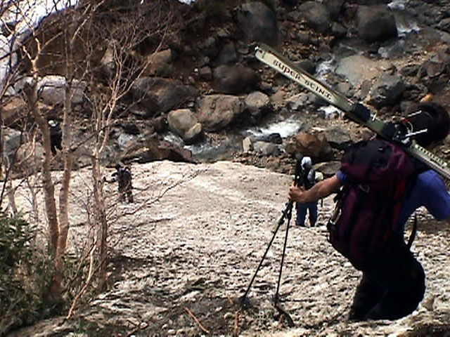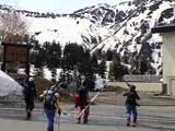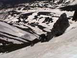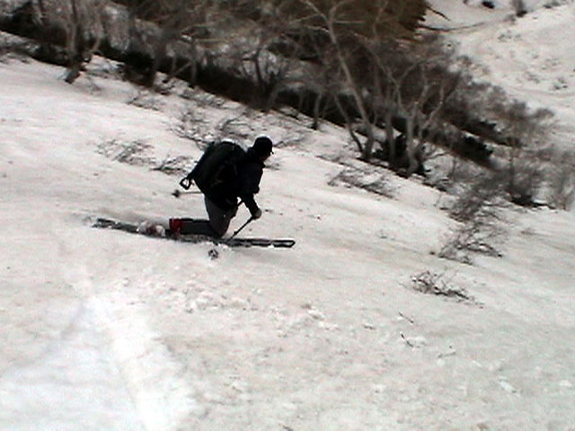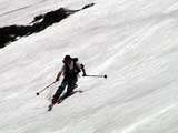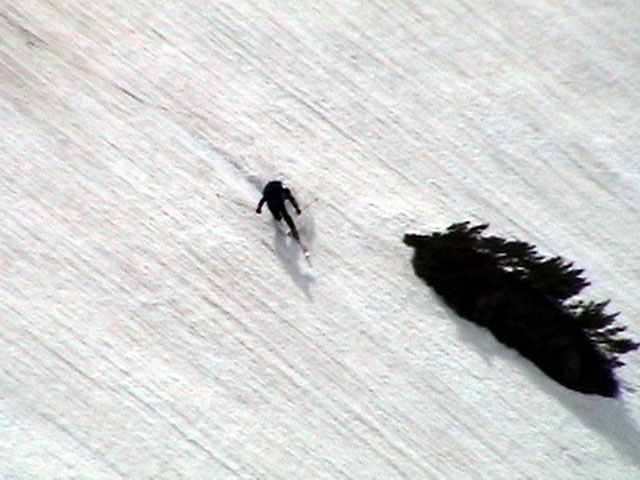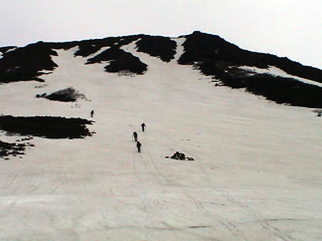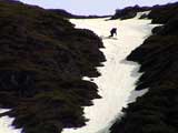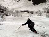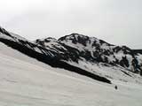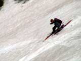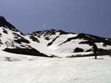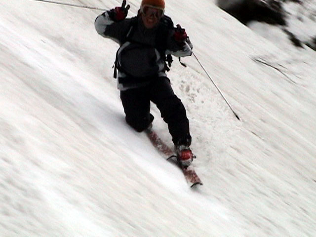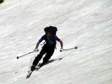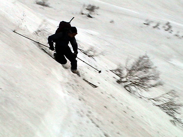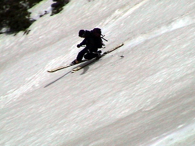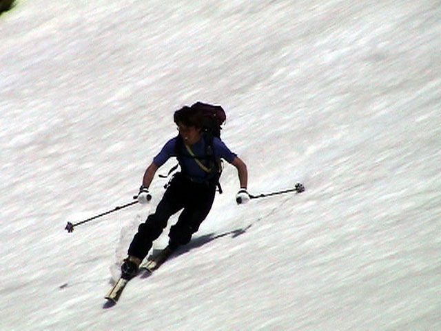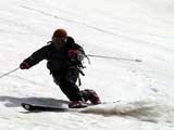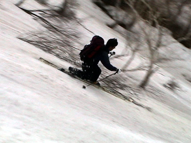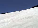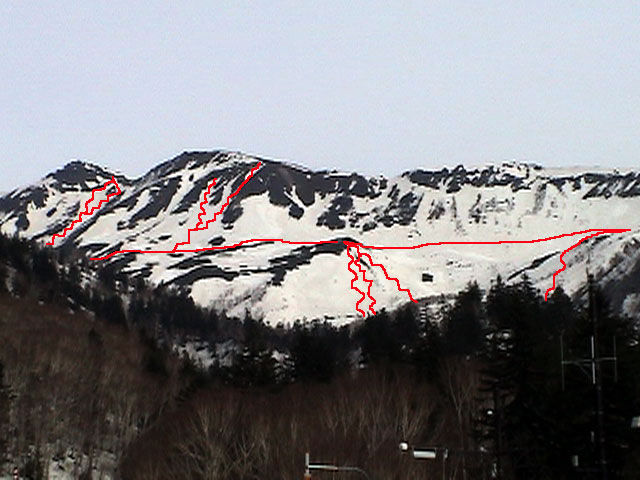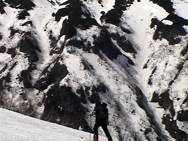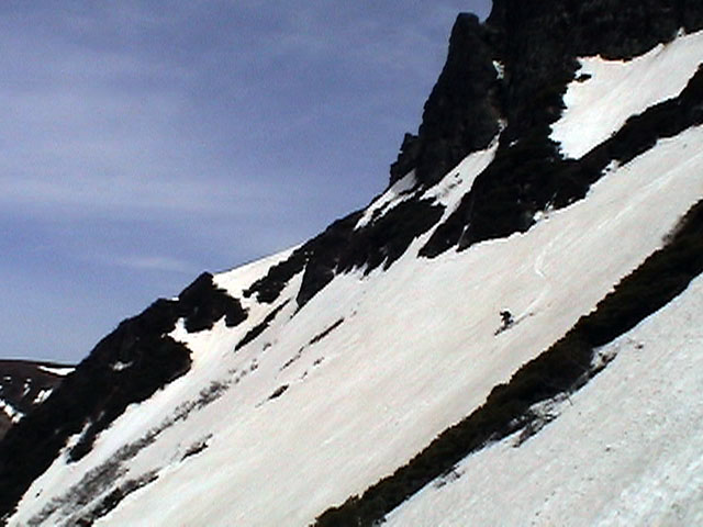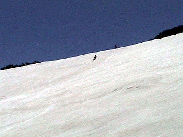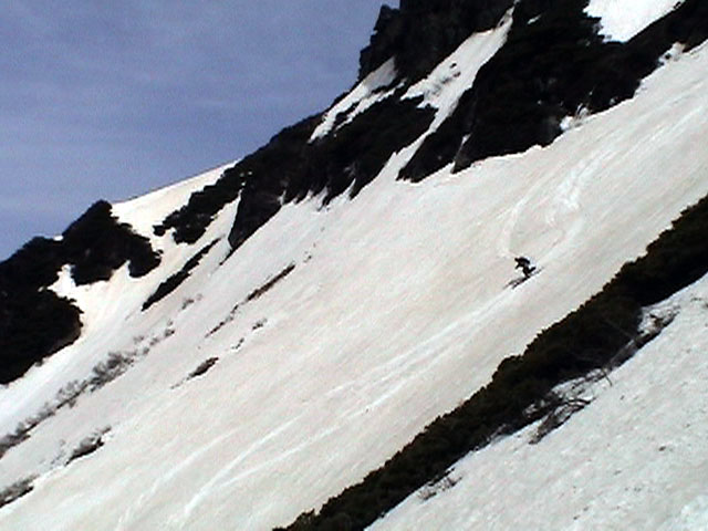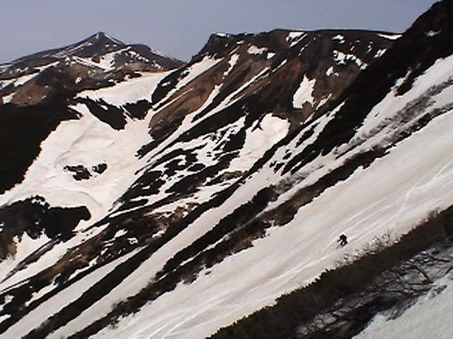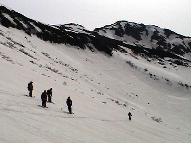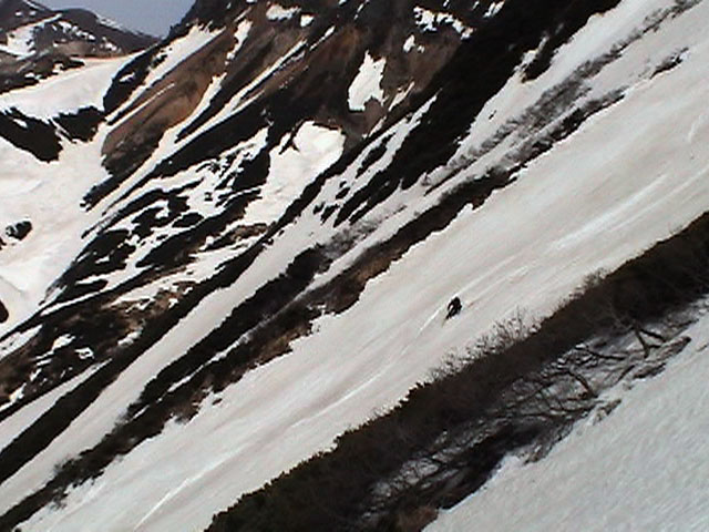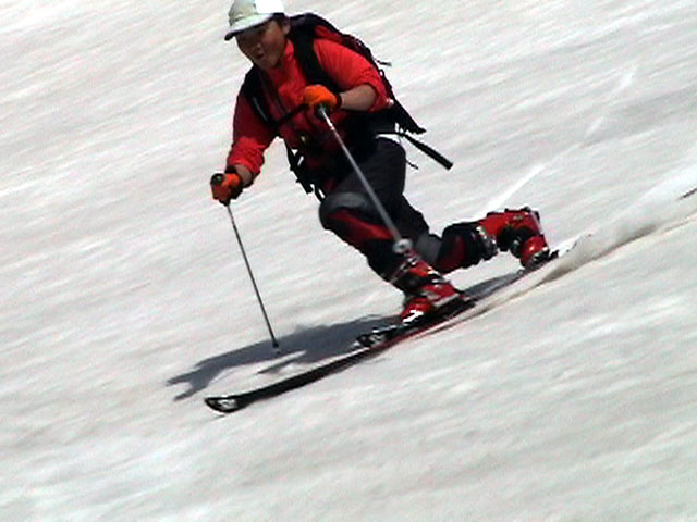 | 2004年5月15日(日) 三峰山スキーツアー(至福のザラメ) 完全に装備を調え、車をロックしスキーを担いだ僕ら「じゃあ、出発するか!」「どこへ?」「へ?富良野岳じゃないの?」「やー、三峰山も良さそうだよねぇ」「・・・」 確かに、富良野岳の樹林帯はツリーホールとゴミだらけでえらいことになっているし、稜線も雪が消えて登りづらそうに見えた。それに比べると三峰山周辺は、ここから見ても雪がたっぷりある。 「三峰山にするか」「そうしよう、そうしよう」一気に場の空気が三峰山へ流れる。 「目的地変更!基本は三峰山へ凌雲閣からアプローチしてバーデンまで降りてくるルート。あとは出たとこ勝負ってことで」こうして再び荷物を車にぶち込み、旦那は右足だけテレブーツを脱いで、急遽凌雲閣へ車を飛ばした。 凌雲閣の駐車場では、Y田さん夫妻、門田さん、エトリックスさんなど、そうそうたるメンバーと出会えた。これから富良野岳のピーク経由で原始が原へ降りるという。長大でおもしろそうなルートである。 僕らは、美味しそうなシュートをつまみ食いしながら富良野岳方向へトラバースするように進むことにした。 暑いので、Tシャツ一枚になり、パンツも裾をまくり上げる。こりゃビールが旨いや。 まず、三峰山の稜線まで登ってから本峰のシュートを頂いた。落石が多く少し難しいザラメ。急な斜面を皆(旦那以外は)果敢に攻める。 今回初参加してくれた”アジャ”は、18歳ですでに女子テレマーク ワールドカップに二回出場している強者だ。初BCなのに思いっきり凄いフォームで滑っていた。転ぶときは最高にスピードに乗った状態で頭から吹っ飛ぶ(鉄則)。登りの体力も問題無し。僕らのお下劣トークにも怯まないし(重要)、なにより度胸がある。将来が楽しみだ。 このシュートでも十分滑りごたえがあると思ったのだが、かっちゃんが難しい顔をしている「うーん、斜度はまあまあとして、ちょっと斜面が広すぎますね・・やっぱ斜面の幅が3メートル以下じゃないと燃えませんねー」「・・・」 そんなかっちゃんの要望で、今度は狭くて急斜面のシュートへ(旦那は下から見物)・・スラフと一緒に落ちそうになっていたけど、楽しそうだった。 最後は、テラス周辺の見事な斜面で分散し、各自が思い思いのラインを滑った。なんて贅沢なんだろう。 対面のタナカスロープをMARICが海外のスキービデオの一シーンのように滑っている。なまこちゃんがのびのびと高速ロングターンを決める。壁みたいな斜面へかっちゃんが当てこむ。アジャが超高速で吹っ飛ぶ。ぱっちまんが変なかつらを被って踊る。皆が爆笑している。 旦那はビールを飲んだりしながら、そんな様子をビデオ撮影していた。残雪が美しい十勝の山並みに囲まれ、仰ぎ見るとどこまでも蒼い空。この時この場所に身を置ける自分の幸運に感謝していたら、不覚にもサングラスの奥で目頭が熱くなった。 天候:快晴〜高曇り 風速:0〜3メートル 気温:未計測だけど、15度以上はあったと思う 雪量:十分 雪質:快適なザラメ コース:凌雲閣〜三峰山〜バーデン上富良野 メンバー:旦那、ぱっちまん、かっちゃん、なまこちゃん、MARIC、アジャ 計6名 |