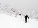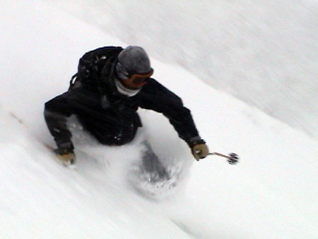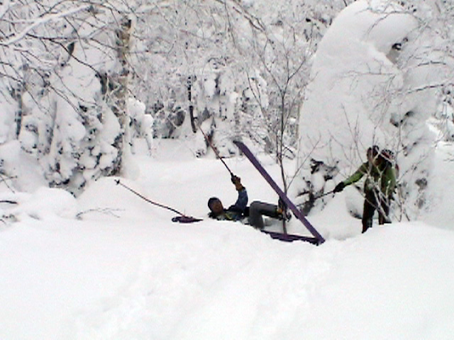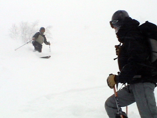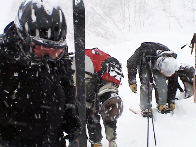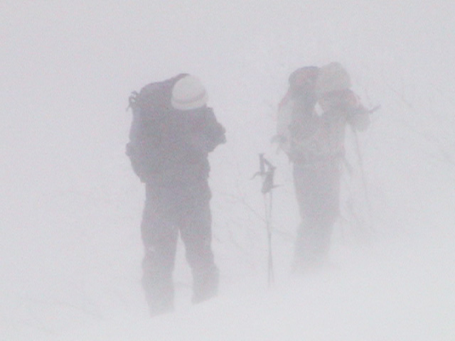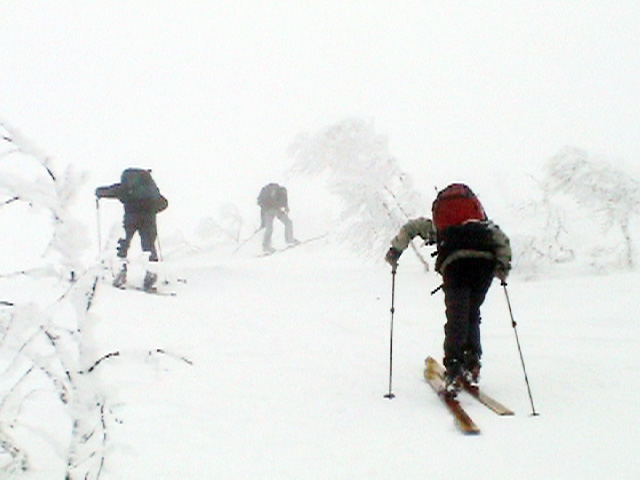 | 2004年12月30日(木) 富良野岳スキーツアー(吹雪で凍傷、これぞ冬山) 散々迷った末に決行した富良野岳。正解でした。 -20度の吹雪。油断するとすぐ凍傷(鼻凍傷になりました)、これだ!これがやりたかったんだよ!ちくしょー!!ってな感じで冬山を満喫してきました(^_^)。 雪は、昨日よりは滑りやすくなっていたようで、旦那は快適にオーバーヘッドパウダーを滑りました。 -20センチに手首〜肘の弱層。風成雪の溜まる斜面を避けて、風上斜面を選んで安全に滑ってきました。旦那的には最高のツアーでした。かっちゃん、ありがとう。 あんまり厳しい条件だったんで、今回は現地からの映像速報をする余裕がありませんでした。 天候:曇り〜吹雪 風速:10〜15m(尾根上) 気温:-17〜-20度 雪量:十分 雪質:深さ30センチオーバー しまり気味のパウダー 風成雪多し コース:バーデン前〜ジャイアント尾根 メンバー:旦那、かっちゃん、スーさん、なまこちゃん 計4名 |