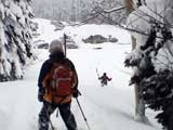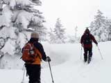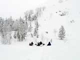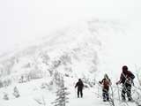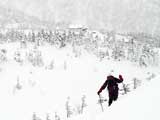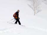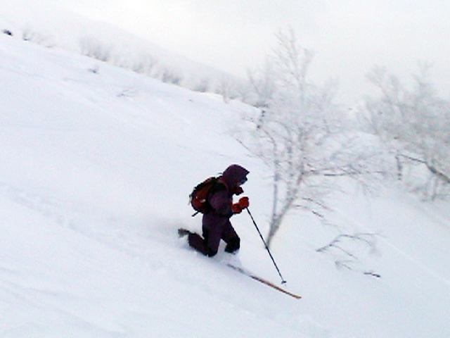| 2005年1月8日(土) 三段山バックカントリーテレマーク・山ボード (ガイドの山小屋ツアーB.C.TELEMARK SKI 十勝連峰) 最近の、滑りのみを追求したハイレベルでハイリスクなツアーのあり方に疑問を抱いた旦那は、スキーツアーの原点とはなにかを考え直すために、しばし富良野岳ツアーから距離を置いて、三段山ツアーから再出発しようと考えていました。 そこへ、ガイドの山小屋さんからツアー参加のお誘いがあったので、ありがたく参加させてもらいました。 今回参加させていただいたのは、「マイ・板で本格的なバックカントリーへの入門編 B.C.TELEMARK SKI 十勝連峰 三段山・富良野岳 バックカントリーテレマーク・山ボード」というツアーの三段山編です。 「深い、ふわふわの粉。ディープ・パウダー。野生の天然雪の雪煙を巻きあげる快感は1度味わったらやめられ ない、言わずと知れた、ここはテレマーカーの聖域です。すべてのバックカントリースキーヤーを魅了して離さない 憧れの十勝連峰、ついにあなたもデビューです。 騒々しい軽率な音楽もリフトもない、あるのは吹き抜ける風とあなたのシュプールを待つパウダーだけ。 足元に広がるのは、誰もいないパウダー斜面です。 さあ、飛び込みましょう!眩しい大雪原と脳味噌とろける異次元空間。あなたはきっと笑いがとまらなくなります。下山後の温泉タイム(吹上温泉白銀荘)も楽しみです。 ぜひ、あなたの自慢の板を持参してご参加ください。では、山で会いましょう。」ガイドの山小屋HPより。 実際参加してみて、滑りとBC雰囲気を楽しむためのコース取りが考えられていて、安全性と楽しさのバランスが良く取れているツアーだと思いました。 ピークに拘らないことにより、滑りやすい斜面を何度も楽しめる内容になっています。滑降斜面は、初心者も上級者も楽しめるものです(もちろん当日の天候・雪質にもよりますが)。 ただし、何度か登り返しをする可能性があるので、参加者はシールの取り扱いに注意された方が良いでしょう。 このツアーでは、「しっかりとラッセルして登り、山の雰囲気をリラックスして楽しみ、仲間と語らい、安全に楽しく滑降する。」旦那が求めていたスキーツアーの原点を、改めて確認できたように思います。山小屋さん、uydaさん、ツアー参加者の皆さん、ありがとうございました。 天候:くもり時々晴れ 風速:おだやか 気温:-10〜-15℃ 雪量:たっぷり 雪質:上層パウダースノー、下層に湿雪 新雪:40cm前後 備考:比較的入山者少なく、静か。ガイドの山小屋ツアー:参加者3名(うち一名は十勝岳山麓バックカントリーツアー参加者) ツアー案内:http://yamagoya.jp/winter/sandan/index.html |