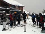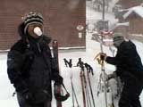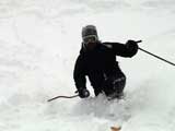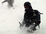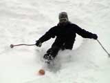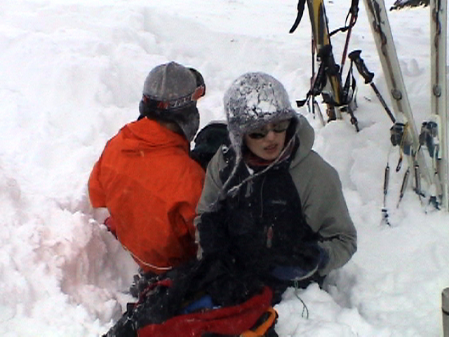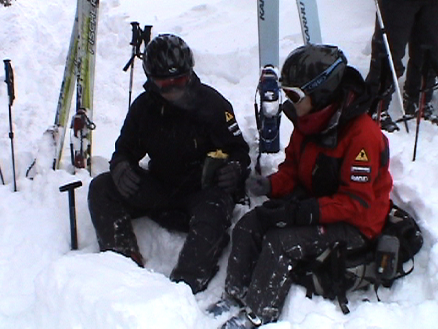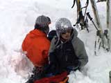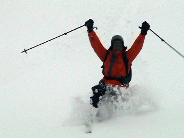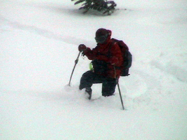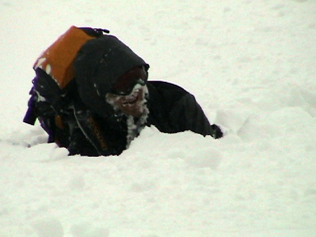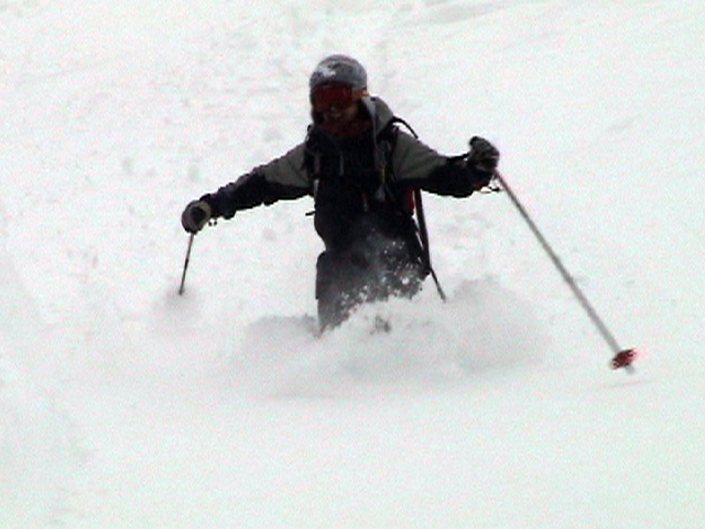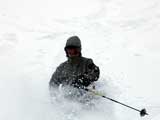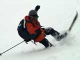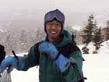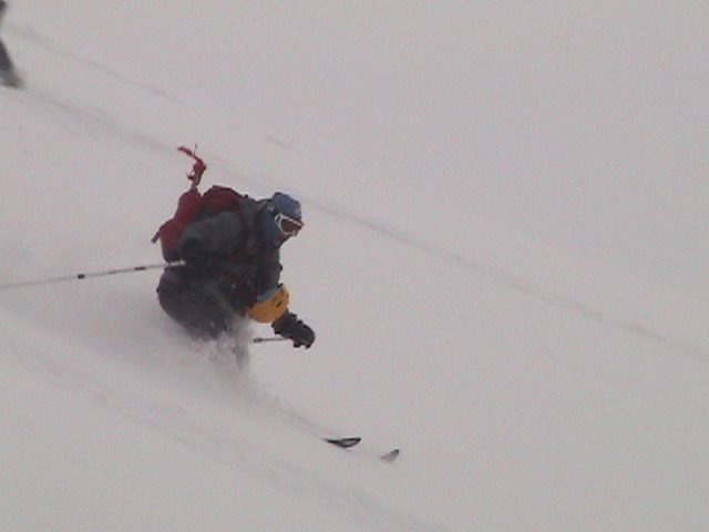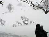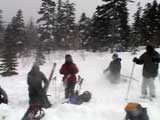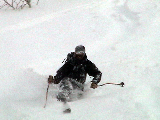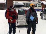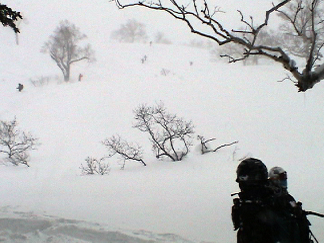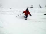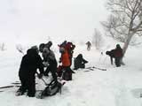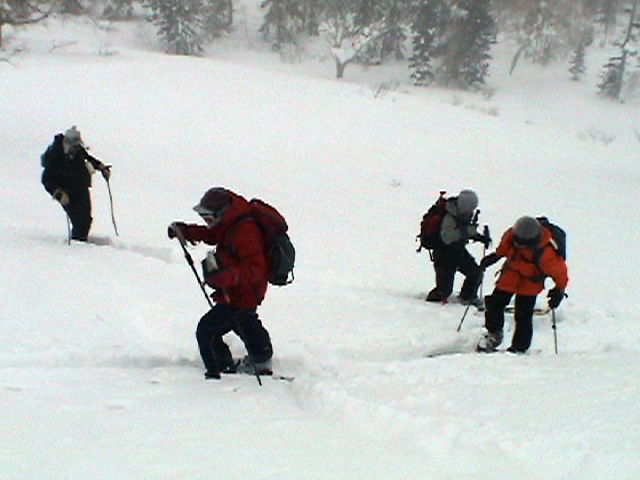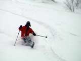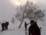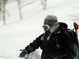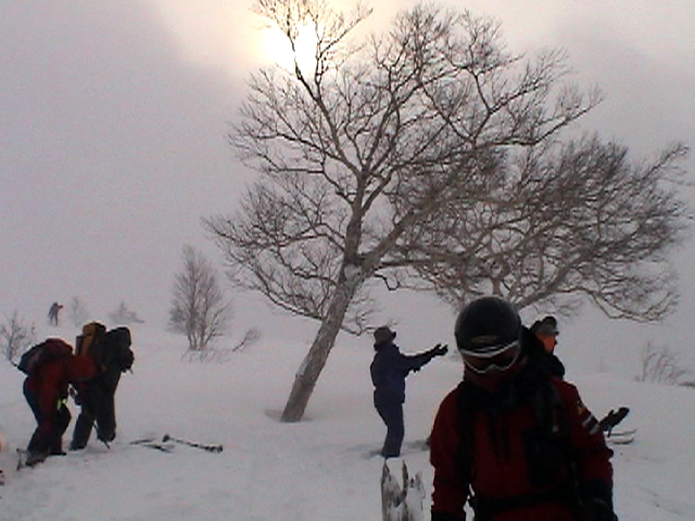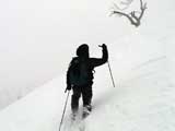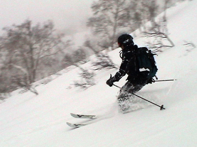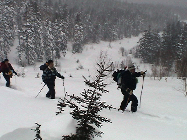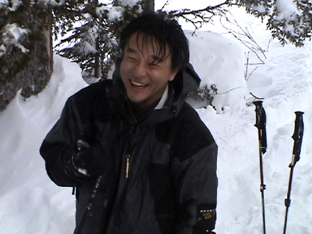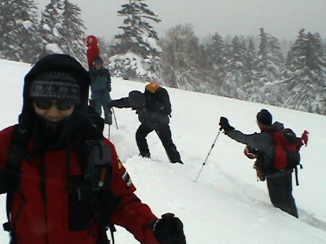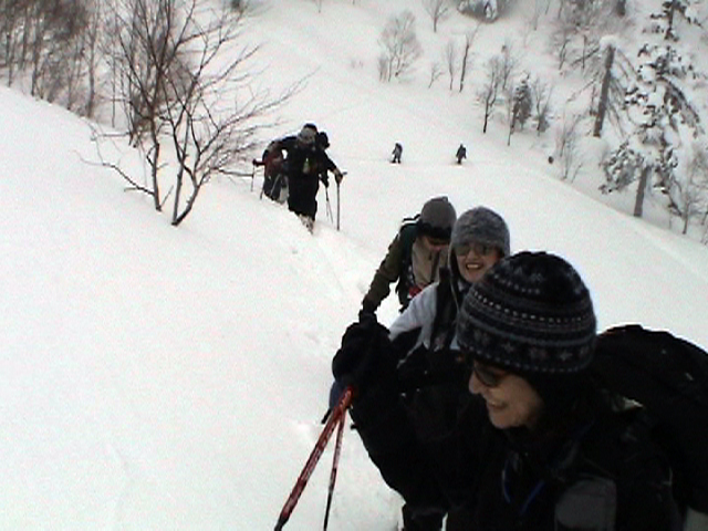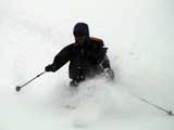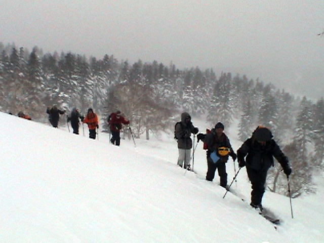 | 2005年1月29日(土) 三段山スキーツアー(ウエルカム あるかんさん) 今回は、わざわざ徳島から遠征してくれた、あるかんさんを三段山へ案内するツアーです。 森林限界付近のオープンバーンを滑りまくってもらおうと思っていたのですが、予想以上に天候と雪が悪くて、二段目の上から引き返す結果となってしまいました。 遠くから来てもらった、あるかんさんには大変申し訳ない。 樹林帯では風はそれほど強くないし気温も高めだったのですが、なにしろ雪が悪かったです・・とにかく重くて深い。かなり斜度があっても滑らないし、トップが刺さって転びやすくて参りました。 二段目の急傾斜でさえ、ボーダーの方(jun@千歳さん)が手で前方をラッセルしないと滑らないほどだったので、スキーで歯が立つ訳がありません。旦那も思いっきり前転埋没しました。 どうしようもないので、二段目の下から皆さんが苦戦している様子を肴に昼食を取り、早々に引き上げることにします。楽しみにしていた樹林帯も、全行程が下りラッセルになるのが目に見えていたので、色気を出さずに忠実にトレースの上を滑って帰りましょう。 一段目でやっと雪質がマシになってきたので(それでも重めだけど)、一段目を登り返して楽しむことにしました。ノートラックよりも、適度にシュプールがあって荒れている方が滑ります。あー何のための新雪なのか(^_^;)。 世にも珍しい「転けるかっちゃん」も見物できたので、まぁ良しとしますか。 工藤ファミリーは、進パパが上手いのはもちろん、進ちゃんのうまさが印象的でした。なんとも将来が楽しみです。 我が家のファミリーBC計画のお手本とさせていただきます。 あるかんさんも、お上手でした。四国の方がこんなにパウダーに乗れるなんて驚きです。 秋山夫妻や原田さんも、ご高齢なのに大変元気よく滑っておられました。 僕らも頑張らなくてはいけませんね。皆様、お疲れ様でした。 天候:曇り〜ブリザード 風速:10〜15m 気温:-4度 雪量:十分 雪質:30センチほどの深さの重い雪 コース:白銀荘〜2段目の上 ピストン メンバー:旦那、あるかんさん、工藤ファミリー(3名)、スー夫妻(2名)、秋山夫妻、原田さん 計10名 |