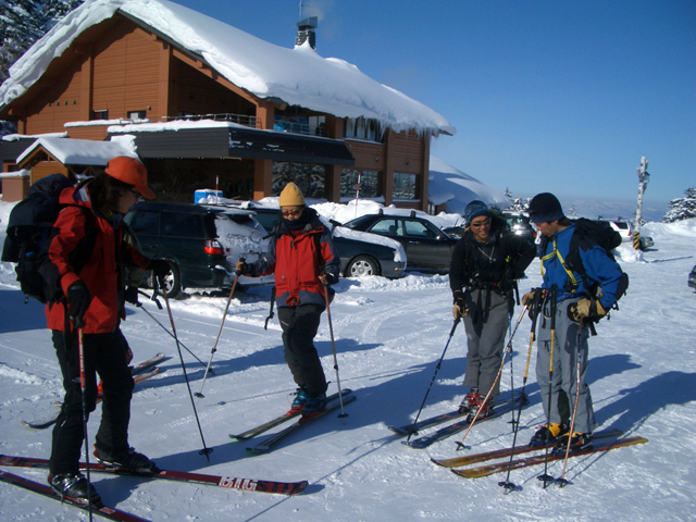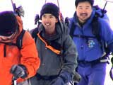 ![]() 白銀荘前 左から、堀田さん、ゆりちゃん、ぱっちまん、かっちゃん |