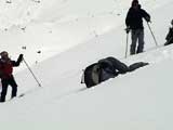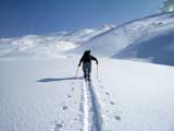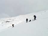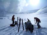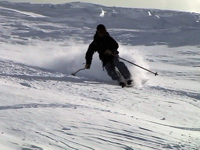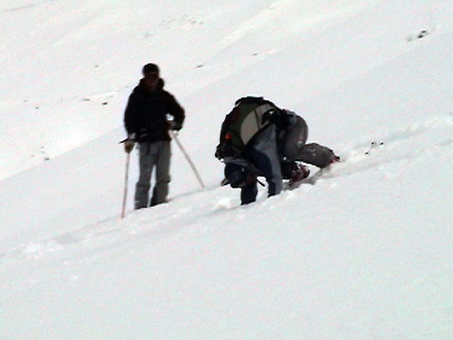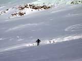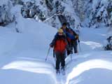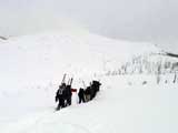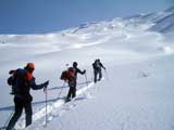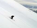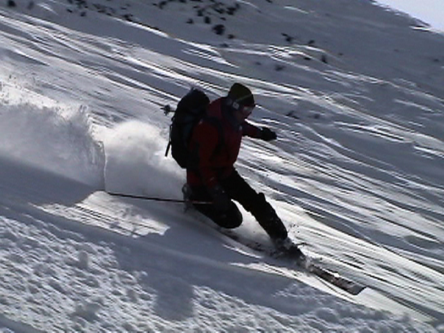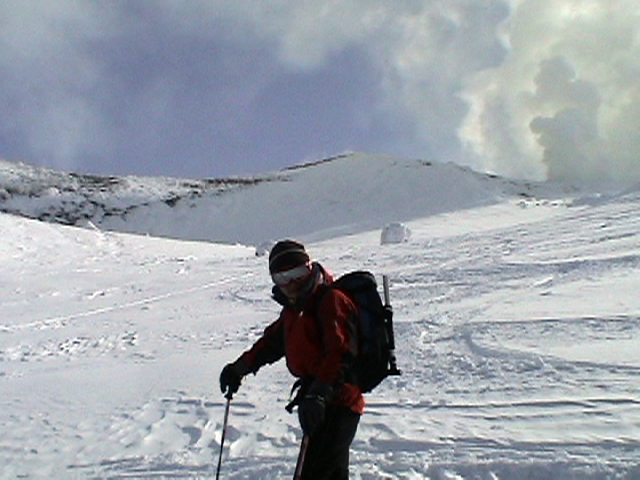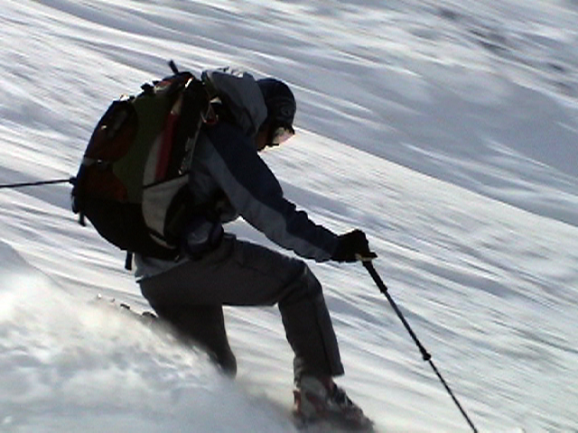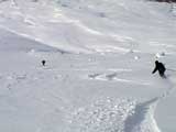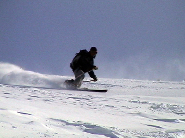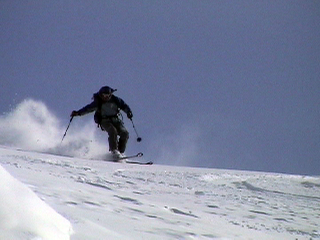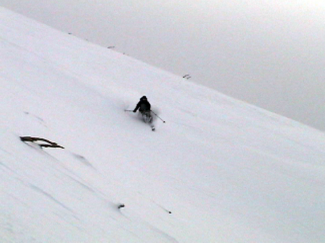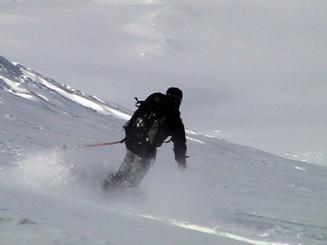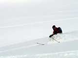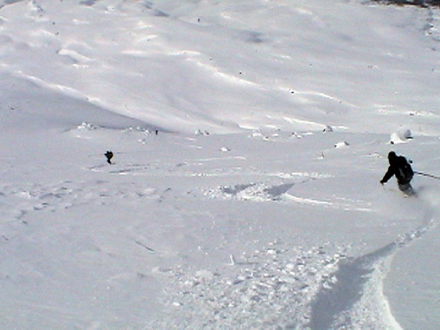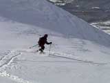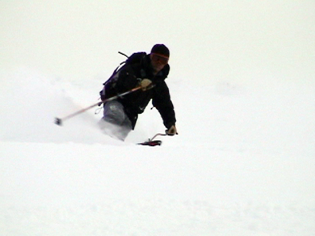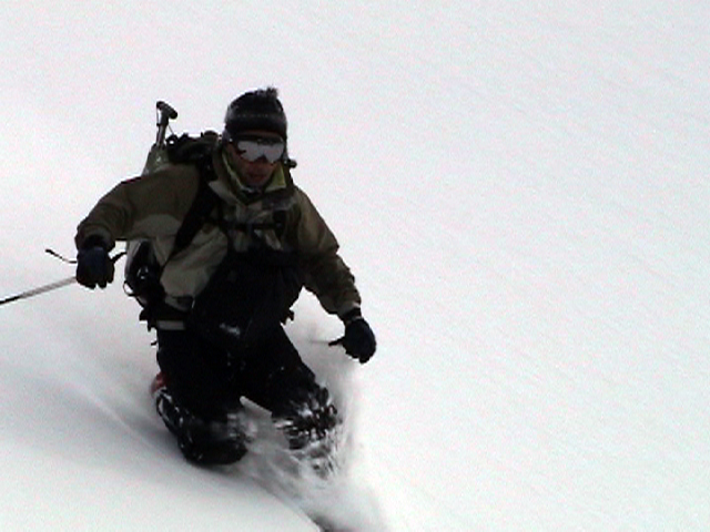 | 2005年2月16日(水) 危険!前十勝スキーツアー(かくも美しく平和で危険な山) 天候:快晴 風速:0〜1メートル 気温:-14度 雪量:十分だが、薄いパウダーの下に岩が多数あり。危険 雪質:上部はウインドパック気味〜その他は重めのパウダー コース:白銀荘〜前十勝 メンバー:旦那、ぱっちまん、かっちゃん、堀田さん、佐藤さん、ゆりちゃん 計6名 今回のツアーは、以前に「おでん屋えとり」で一緒に飲んだことのある堀田 貴之氏から、「今度一緒に山へ行きませんか?」とのお誘いを受けたのがきっかけだった。予定された日が平日だったので、職場の休みをとったりして準備していたのだが、なかなか堀田さんから連絡が来ない。 やっと前日の夜に電話で、堀田さんの他にカメラマンの佐藤さん、美人モデル(ゆりちゃん)が参加するのでよろしくと告げられた。 美人モデル?初耳だ。いったいなんの取材なんだろ?まぁそんな細かいことは気にしない三段山クラブなので、こちら側はぱっちまんとかっちゃんに応援を頼んで(二人に多謝!)、いつも通り白銀荘に集合とした。 行き先は三段山を予定していたが、堀田さんはすでに川上さんと快晴の三段山に登ったことがあるようなので、前十勝か富良野岳のどちらかを登ることにして、当日に現地で判断することにした。 |