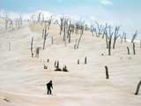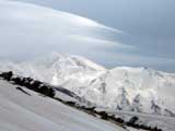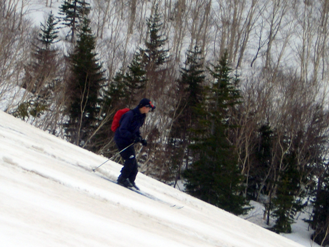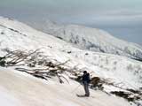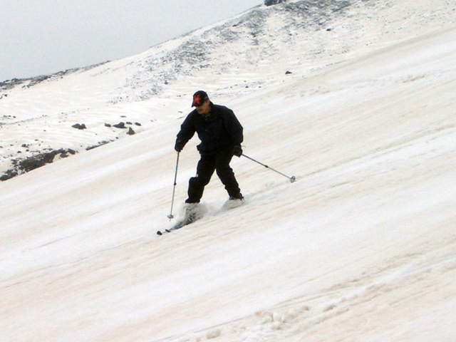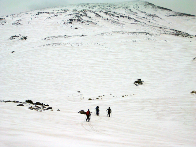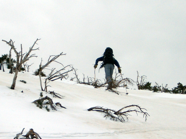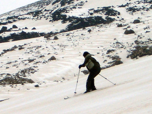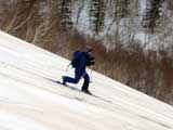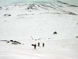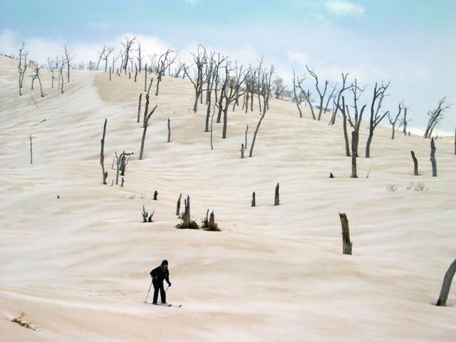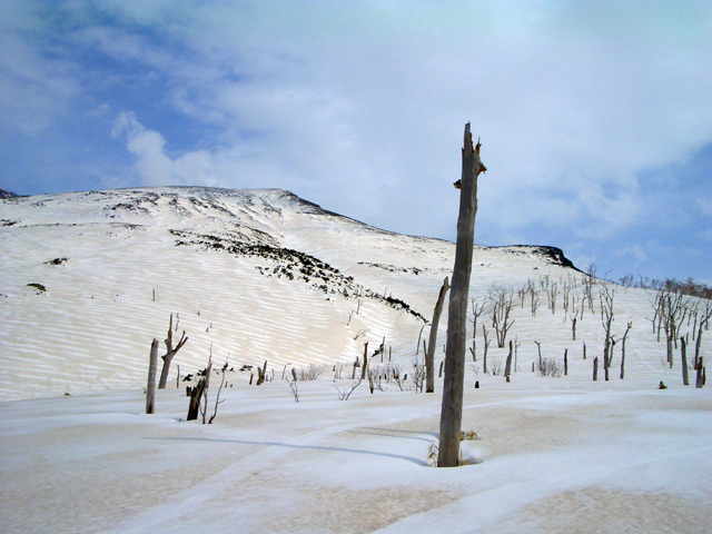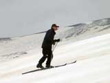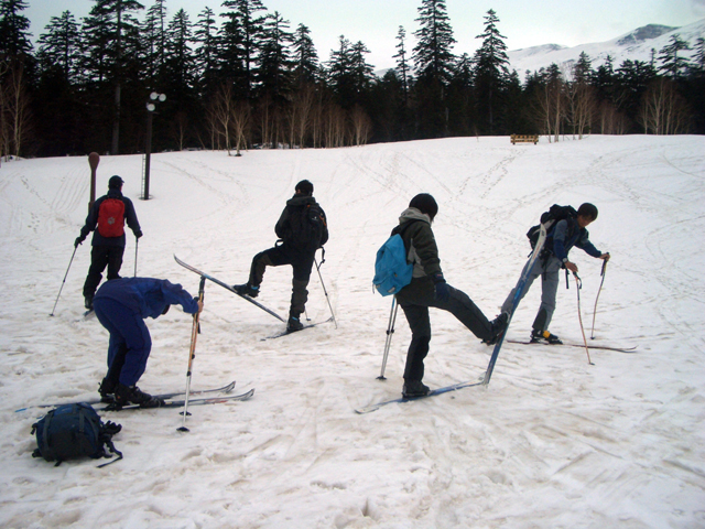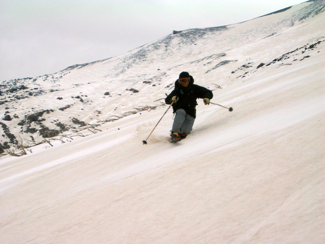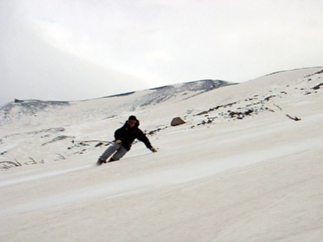| 2005年5月1日(日) 前十勝スキーツアー(こんにちわ黄砂ーガイドの山小屋ツアーお手伝い) 天候:雨〜曇り 風速:0〜3メートル 気温:3〜9度 雪量:十分だが岩に注意 雪質:柔らかめのザラメ 黄砂あり コース:白銀荘〜千春沢付近〜白銀荘 メンバー:かっちゃん(ガイド)、旦那(サポート)、お客さん4名 計6名 今日は、ガイドの山小屋ツアーのお手伝い。恐らく、旦那にとってGW中唯一のツアー。 天気は朝から強い雨で山は分厚い雲に覆われていた。 しかし、白銀荘到着と共に視界が開けてきて、時々小雨の降る中快適なスキーツアーを楽しむことができた。 山は実際に行ってみないと分からないものだ。 残念ながら昨日黄砂が降って、滑りづらい所もあるが、雪自体はたっぷりとある。 白銀荘前のキャンプ場にも1〜2メートルは積もっている。今シーズンは長くスキーが楽しめると思う。 |