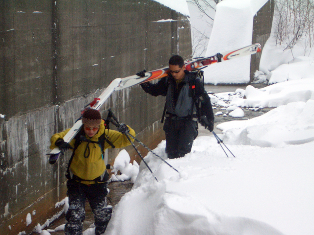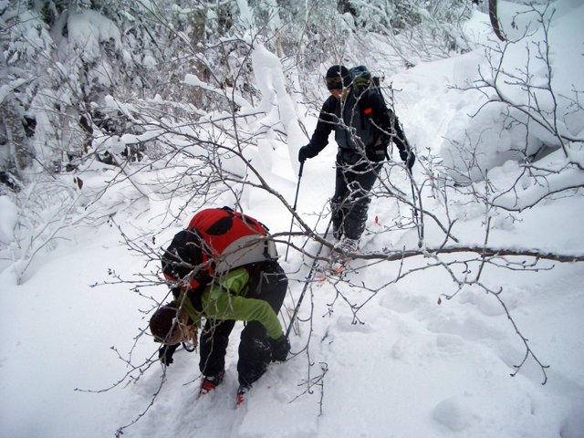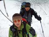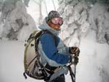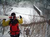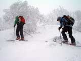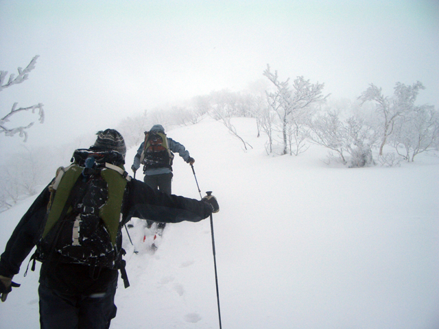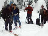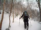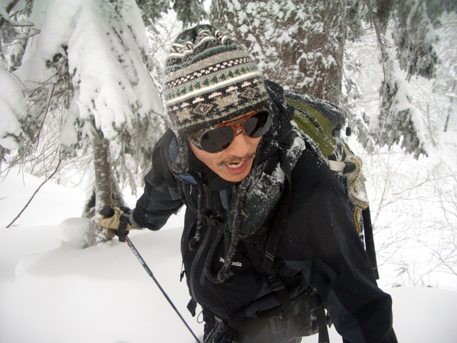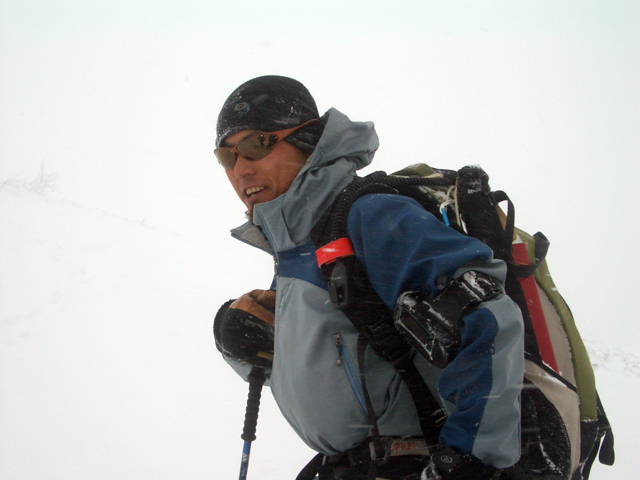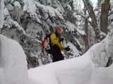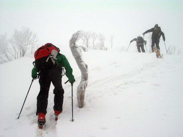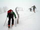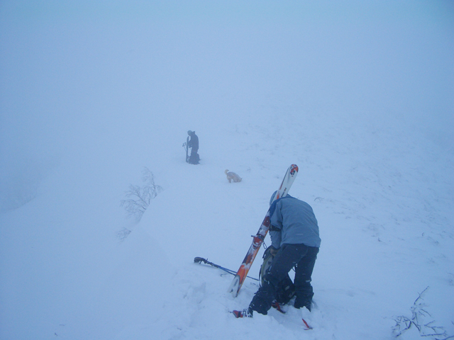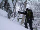 | 2005年11月26日(土) 富良野岳スキーツアー(初滑り、おっ!?意外と滑れるじゃん) 富良野岳へ初滑りに行ってきた。 この時期のBCツアーは体力と装備な点検を兼ねるので、旦那は例年単独か極少人数で動くことが多い。今回も一人で行く予定だったが、たまたま田中パパ達も入山する予定だったということで、ご一緒させてもらった。 旦那は、今年のオフシーズンまったく動いていなかったので、体力面の不安が一番大きかった。 田中パパ達にその旨を伝えてはいたが、実に自信が無い。 目的地は、先週の三段山の状況(雪質は良いけど、積雪は三メートルほど足りない)を聞いていたので、富良野岳とした。 富良野岳は深い谷が多いので、探せば十分に積雪している場所を見つけることができるかもしれないからだ。 天候:曇り時々雪 |