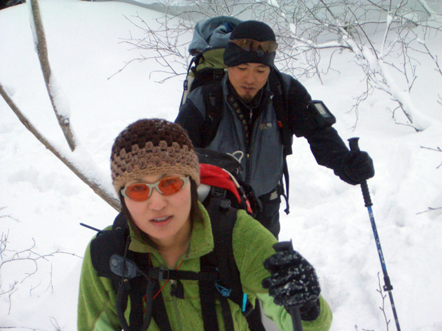 ![]() 三段山登山口の状況 今日は5パーティくらい入っていたようだ |