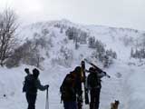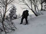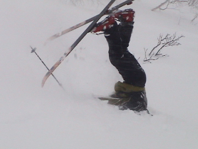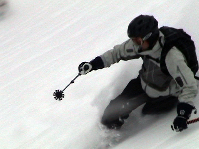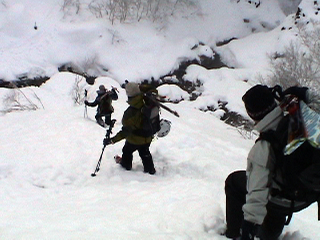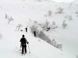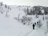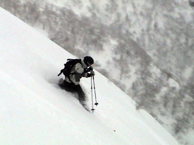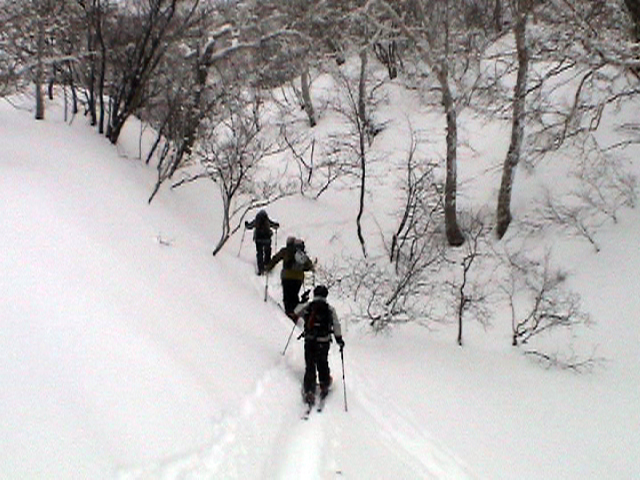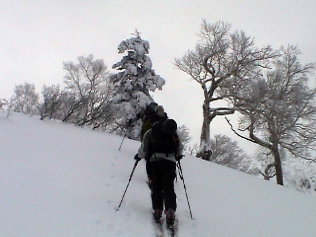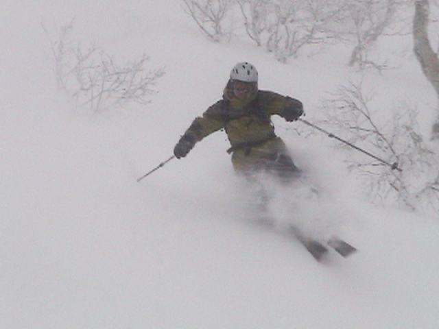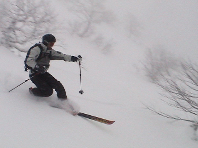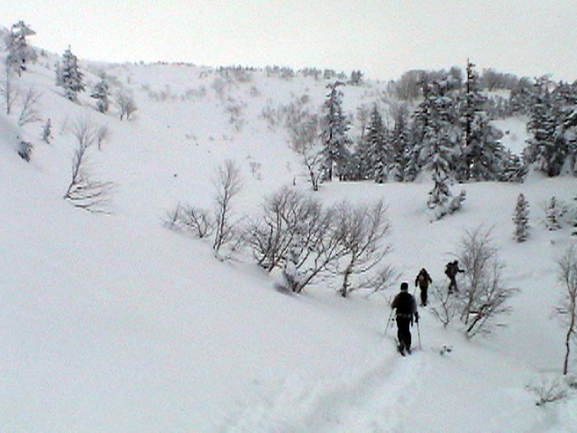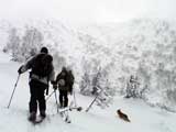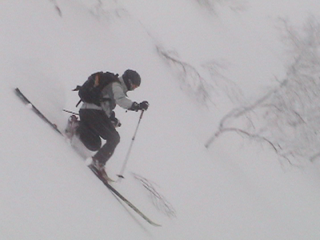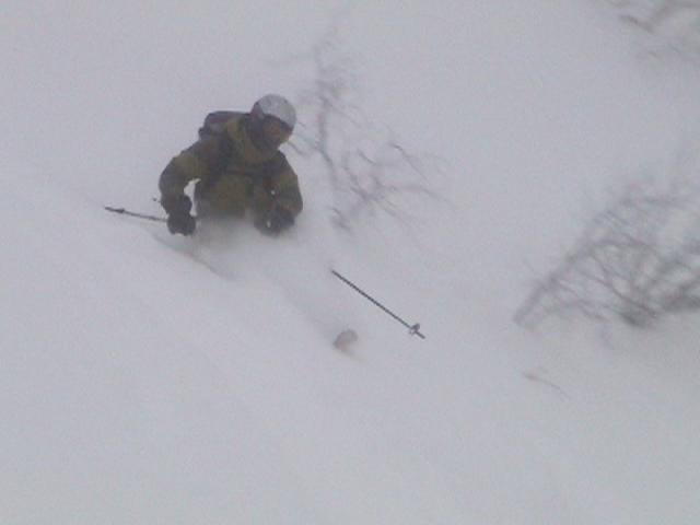 | 2006年12月24日(土) 三峰山Qaliスキーツアー( ホワイトアウトクリスマス!?) 今回のツアーは、KENさん(アバランチボールの人)がQaliのツアーに参加するということで、以前からKENさんと会いたいと思っていた旦那がぱっちまんに無理を言って、ツアーヘルパーとして参加させていただいたもの。 KENさんには、しっかりアバランチボールを見せてもらいました。恐らく旦那のABSもKENさんのアバランチボールも、日本で買った人は一人だけだと思います(^_^)。これは凄いことだと思う。 実際に見たアバランチボールは、思ったよりも複雑な機構で驚きました。展開は簡単ですが、折りたたむのは結構大変です。アバランチボールは展開すると、色といい形といいほおづきそっくりでプリティ。うーん、旦那も欲しくなりました(^_^)。 天候:曇りのち雪 上部は視界不良気味 |
