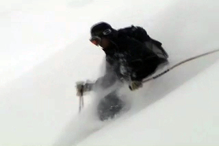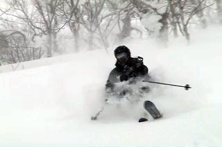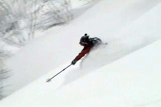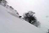 雪は深くて重いが、斜度があるのでオーバーヘッドパウダーとなる。