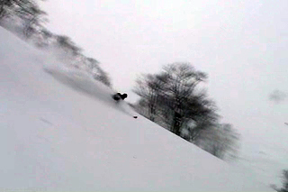 かっちゃんは、比較的安全なラインを指示してくれるが、それでも波打っている斜面を飛びながら滑ることになる。