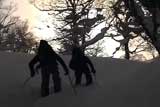 | 2006年2月11日(土) 某山域スキーツアー( The Day) 今日は、かっちゃんが独自に開拓している某山域へ。 最高の斜面が喰えるが、猛烈な登り返しをしないと帰ってこられないという極端なフィールドで、体力の無い奴が行くと登り返しができなくて谷底をさまよって死ぬと言われている。 面白い!死んでこようじゃないか!というわけで行ってみた。 天候:曇り時々晴れのち吹雪 気温:-8〜-10度 風速:0〜5m 雪量:十分 雪質:少し締まり気味30〜40センチ程度のパウダー コンプレッションテストの結果、-40センチに評価4〜5の弱層。場所によっては滑るだけで表層が切れて流れる状況。 メンバー:かっちゃん、あいちゃん、スーさん、キャプテン、旦那 計5名 |