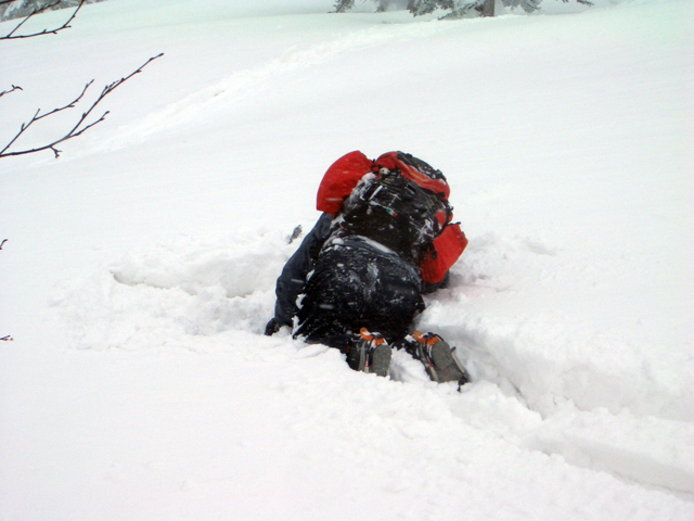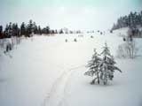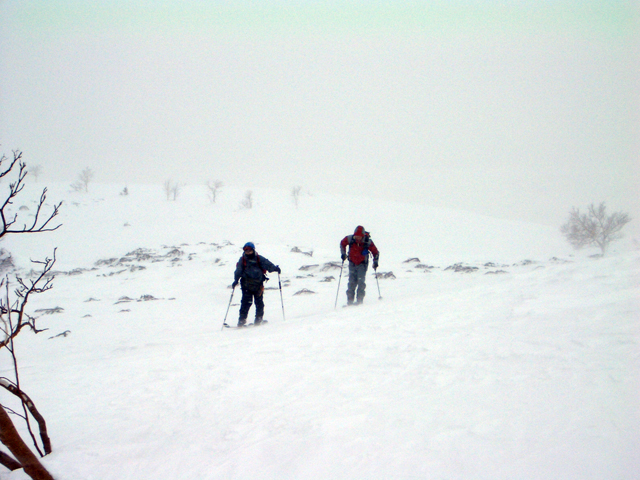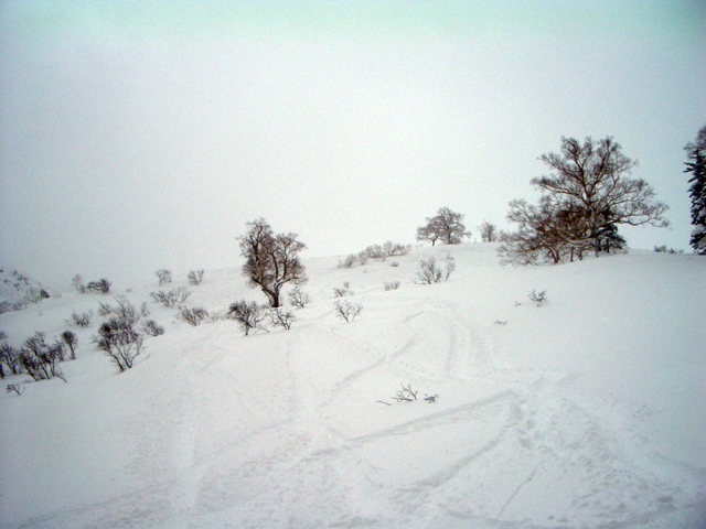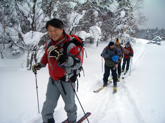 天候:曇り&雪気温:-7度 風速:0〜10m 雪量:十分雪質:樹林帯〜森林限界付近は重めの深い雪、上部はクラストかウインドパックされた雪 コース:白銀荘〜三段山二段目の上〜白銀荘 メンバー:旦那、あるかんさん、A山さん、H田さん、K下さん 計5名