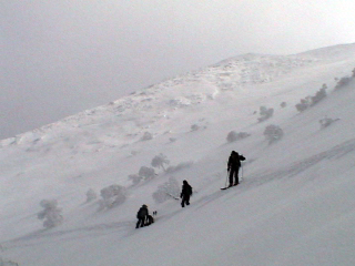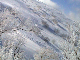 ![]() ジャイアント尾根を沢山のスキーヤー・ボーダーが滑る (こぐさん達) |