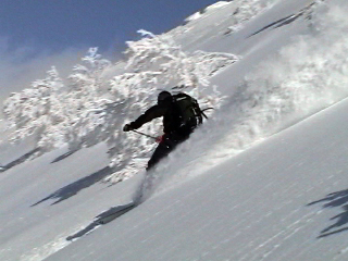 | 2006年3月25日(土) 富良野岳スキーツアー(久しぶりの快晴パウダー) 土曜日の天気が良さそうだ!気温が低く雪が降った後なので、ひょっとしたら極上のコンディションになるかも・・そういうわけで、金曜日の夜に急遽ツアーが決定した。 緊急招集に集まったのは三段山クラブの精鋭達・・さて、 天候:曇りのち晴れ 気温:-6〜0度 風速:0〜3m 雪量:十分 雪質:ハードパックの上に20センチ程度のパウダー 弱層試験の結果は、別パーティの試験で-60センチに弱層。旦那のシャベルコンプレッションテストでは-20センチに評価3。 コース:バーデン前〜ジャイアント尾根〜ベベルイ沢〜北尾根〜北尾根TGR〜バーデン前 メンバー:旦那、田中ファミリー(パパ、ママ、ゆうちゃん、Mix)、ぱっちまん、かっちゃん、スー家(スーさん、キャプテン) 計8名 |