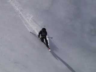 気持ちよく酔っぱらったところで、大テラス南西の斜面を登り返して滑る。こちらも気持ちよく滑ることができた。