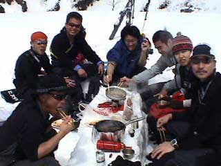 | 2006年3月25日(土) 三段山スキーツアー(この世の天国焼き肉ツアー) 日曜日は晴れろ、晴れろ、晴れろ〜と念じていたら、晴れてくれた。 なにしろ今回のツアーは、焼き肉ツアー。気合いが入る。 天候:曇りのち晴れ 気温:3〜15度くらい? 風速:0〜5m 雪量:十分 雪質:良いザラメ 場所によってはスラッシュ雪崩。三峰山で大規模な表層雪崩が発生していた。 コース:白銀荘〜三段山〜フリコ沢〜白銀荘 メンバー:旦那、田中ファミリー(パパ、ゆうちゃん、Mix)、ぱっちまん、Kinpeiさん、naokiss、こーたろうさん、cokkiさん 計8名 |