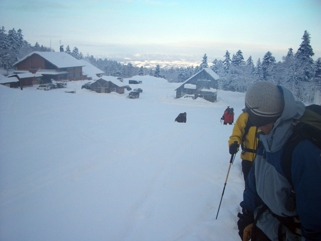 ![]() 出発! 白銀荘を振り返る。駐車台数の少なさよ |