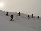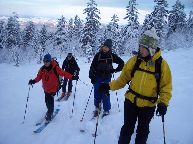 | 2006年12月30日(土) 三段山スキーツアー( 偵察第二弾) 前日に田中パパから電話が入る。 「旦那さん、明日どうするの?」 「山ですか?行きたいけど風邪気味で・・」 「風邪?そんなの山で治せばいいじゃない」 「いやー咳と鼻水が止まらないので、マイコプラズマ肺炎かな?と・・」 「いいから、そんなの山に登ったら直ぐに治るって。下界じゃ治らないよ」 というわけで、今年最後の山行きとなった。目的地は、まだ今シーズン登頂していない三段山。ルートは、今期の情報がまだ少ない西の谷方面となった。 天候:曇りのち晴れ 気温:-10〜-15度 風速:樹林帯は無風。尾根上は5m/s 雪量:不足気味 雪質:アイスバーン、シュカブラ、パウダー、パックスノー コース:白銀荘8:45〜11:10三段山山頂11:25〜12:25西の谷付近登り返し13:05〜13:30白銀荘 メンバー:旦那、ぱっちまん、kinpeiさん、コータローさん、T.papa & Ai & yuu、Mix 計7名 |