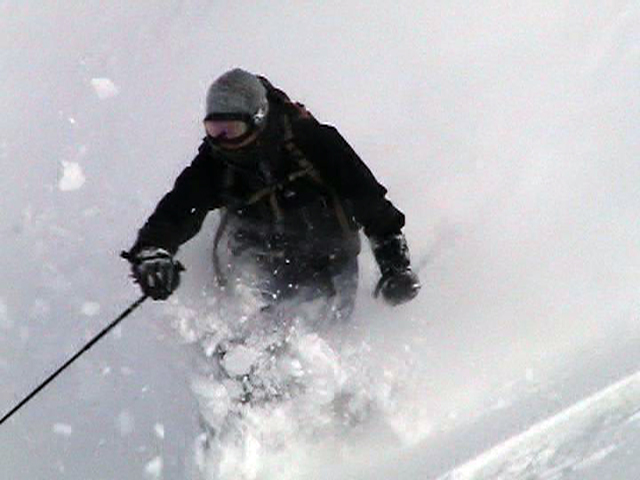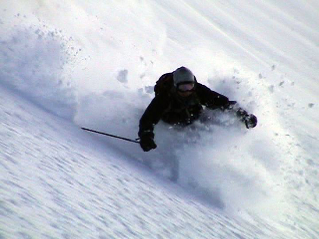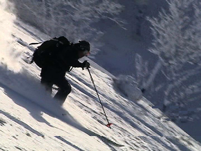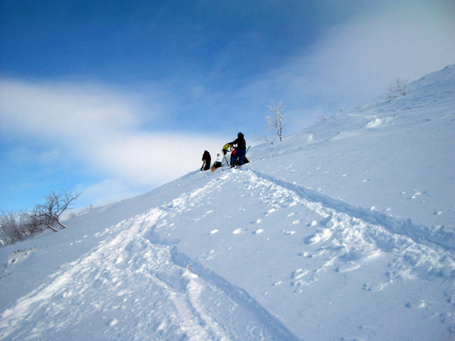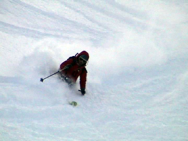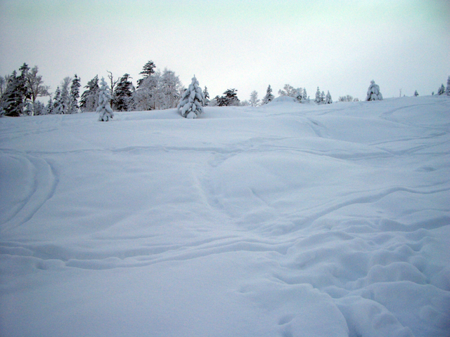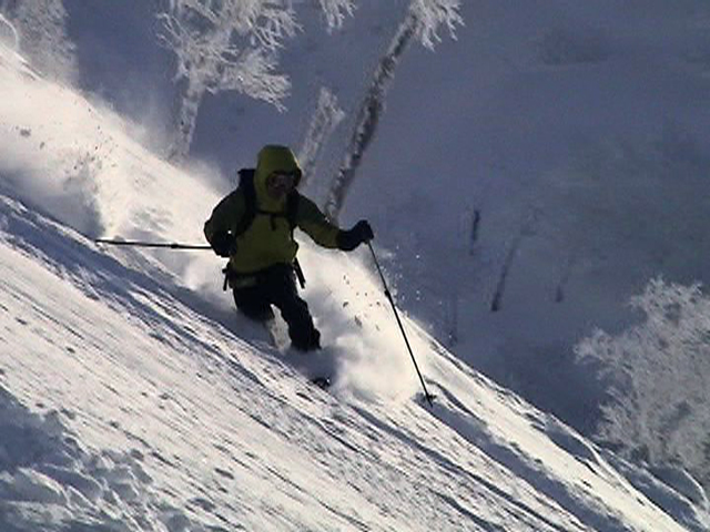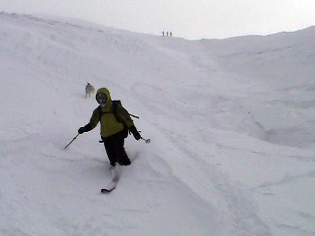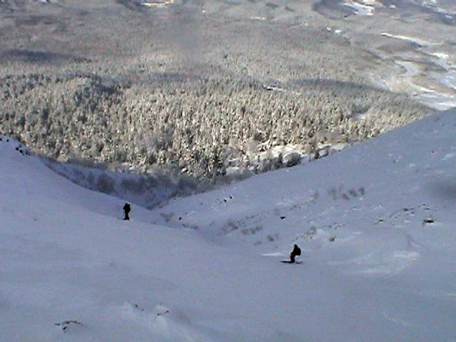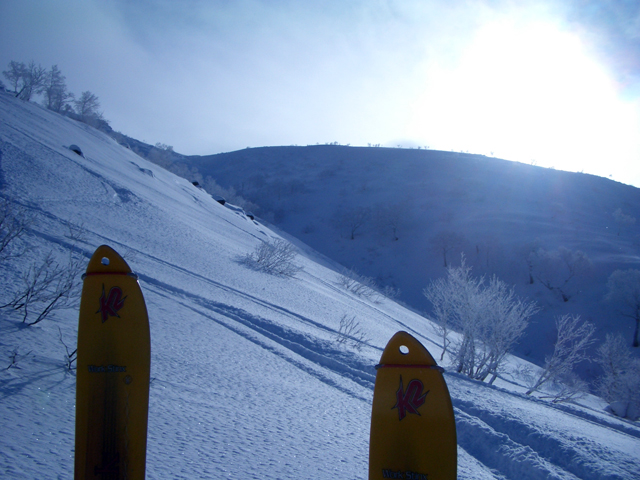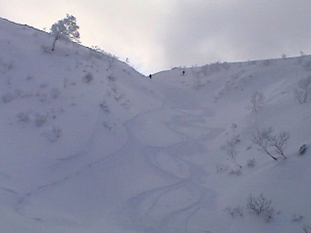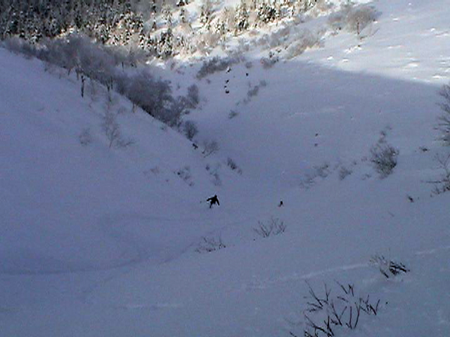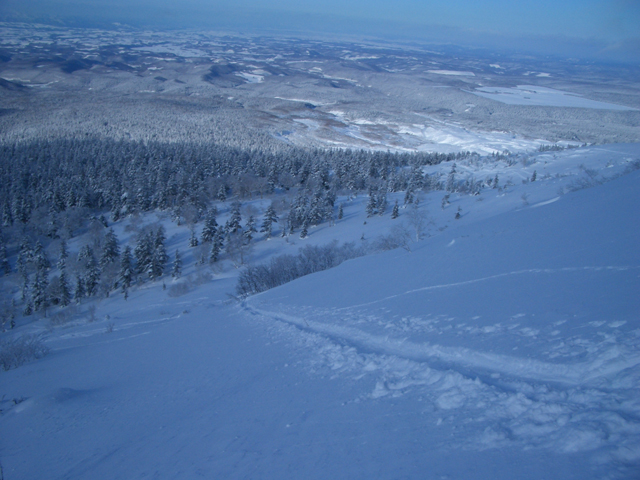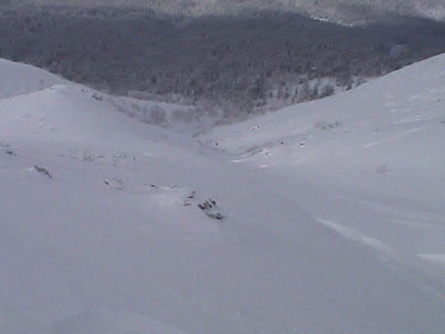 ![]() 西の尾根を見下ろす ここを滑るのだ |